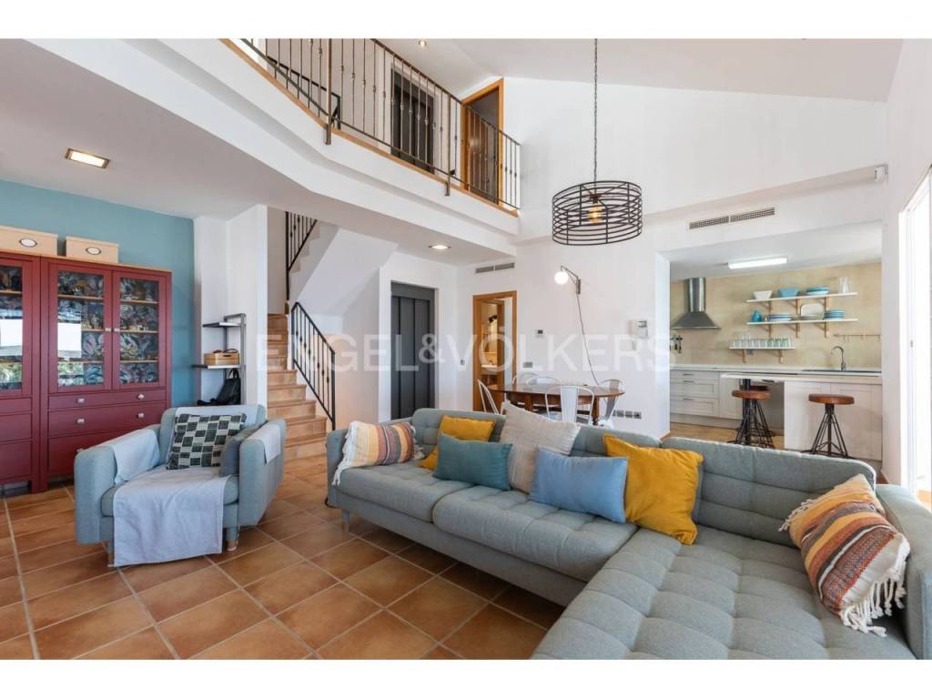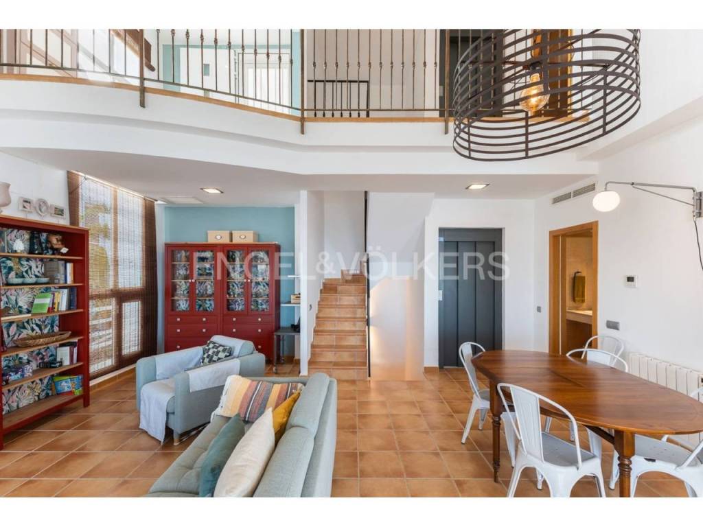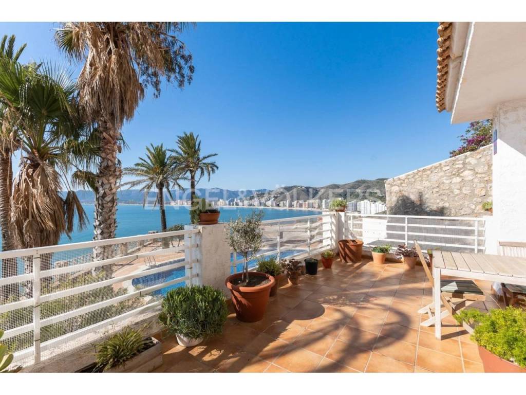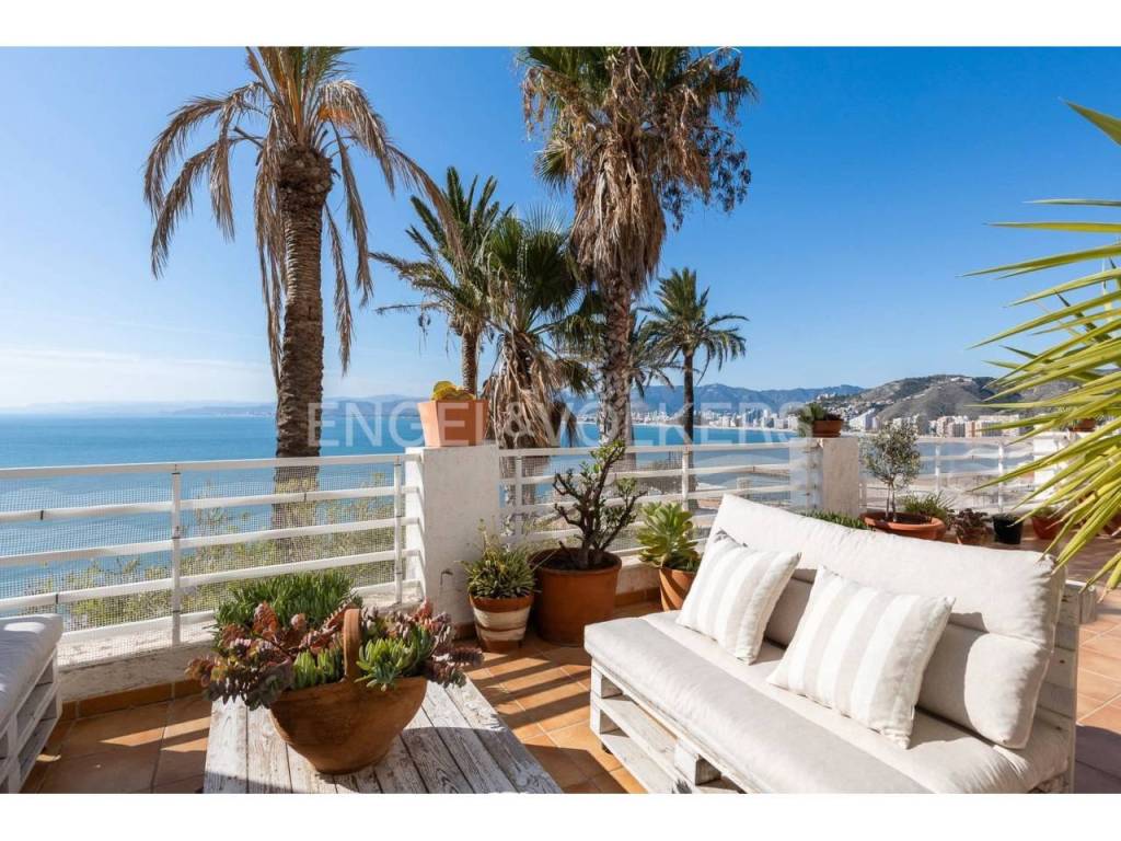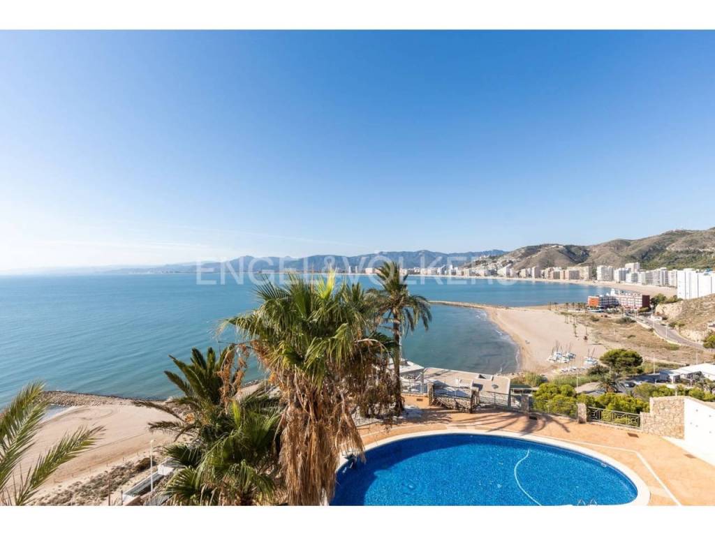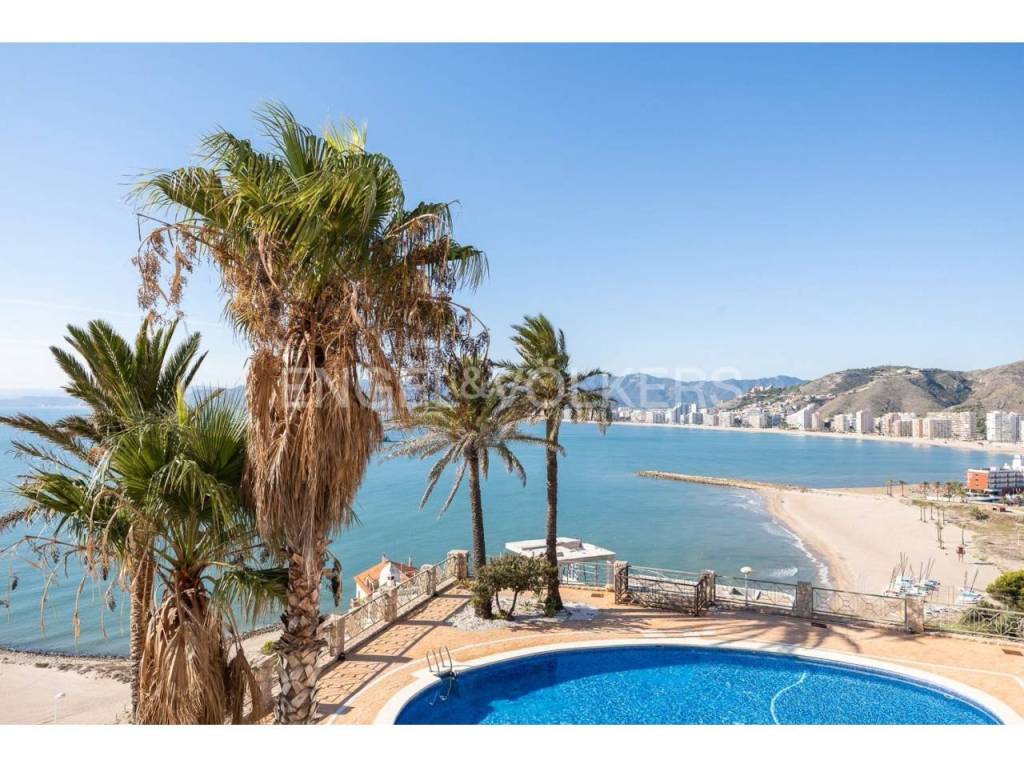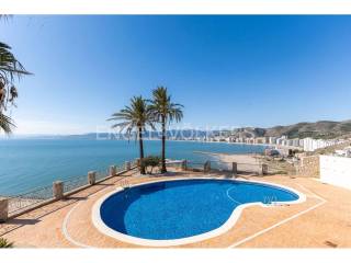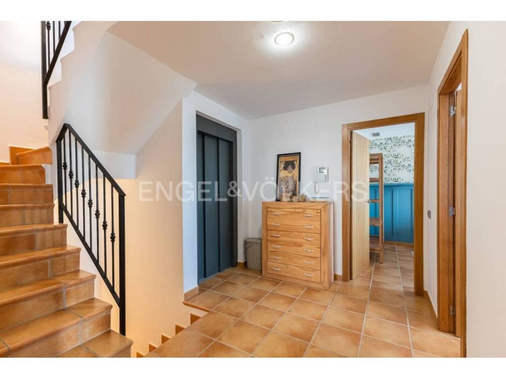 Exclusiva casa a la venta en la urbanización Punta Negra de Cullera, destacando sus impresionantes vistas por su ubicación elevada respecto al nivel del mar y a la vez no excesivamente alejada de la playa. La vivienda es muy espaciosa disponiendo de distintos ambientes para la comodidad y disfrute de cada rincón. Ubicada en una zona residencial muy tranquila, esta casa es ideal para quienes buscan espacio y entorno inigualable, así cómo adaptabilidad a personas con movilidad reducida, disponiendo de ascensor y montacargas privados en el interior de la vivienda. La casa se encuentra en excelentes condiciones, distribuida en varias alturas, todas ellas accesibles por escaleras y/o el ascensor privado. En el acceso a la propiedad desde la calle en la parte alta, encontramos el recinto de garaje-almacenamiento con entrada al montacargas que conecta con la primera planta en sentido descendente, a la cual también se puede acceder por la escalera exterior. En la primera planta en descenso encontramos el recibidor en altillo con vista al salón comedor, existiendo en este altillo una habitación dormitorio doble y el acceso al ascensor y a las escaleras que conectan las distintas plantas de la casa por el interior. En la planta de día se encuentra el salón-comedor muy luminoso, con salida a terraza cerrada con vistas espectaculares al mar. Junto al salón comedor se encuentra la cocina abierta, totalmente equipada, un cuarto de aseo de cortesía y la estancia lavadero. En la siguiente planta en el sentido descendente se encuentra la zona de noche, con tres habitaciones dormitorio dobles, una de ellas principal con cuarto de baño en suite, existiendo un segundo cuarto de baño en esta misma planta. Siguiendo el sentido descendente, en la siguiente planta encontramos una estancia multiusos de 40 m2, acompañada de un cuarto de baño con plato de ducha y salida a terraza abierta de 65 m2 con vistas al mar y el entorno. Un nivel por debajo de la última planta en sentido descendente existe un espacio cerrado, privado de la vivienda, actualmente diáfano con una superficie de 65 m2, el cual puede ser aprovechado para diversos usos. Desde el nivel inferior de la casa se accede directamente a la piscina comunitaria, la cual destaca por sus vistas y tranquilidad. La casa está acondicionada con climatización frío/calor por conductos, lo cual unido al excelente aislamiento térmico que aportan los ventanales de la casa, la convierte en ideal para la residencia en cualquier estación del año.