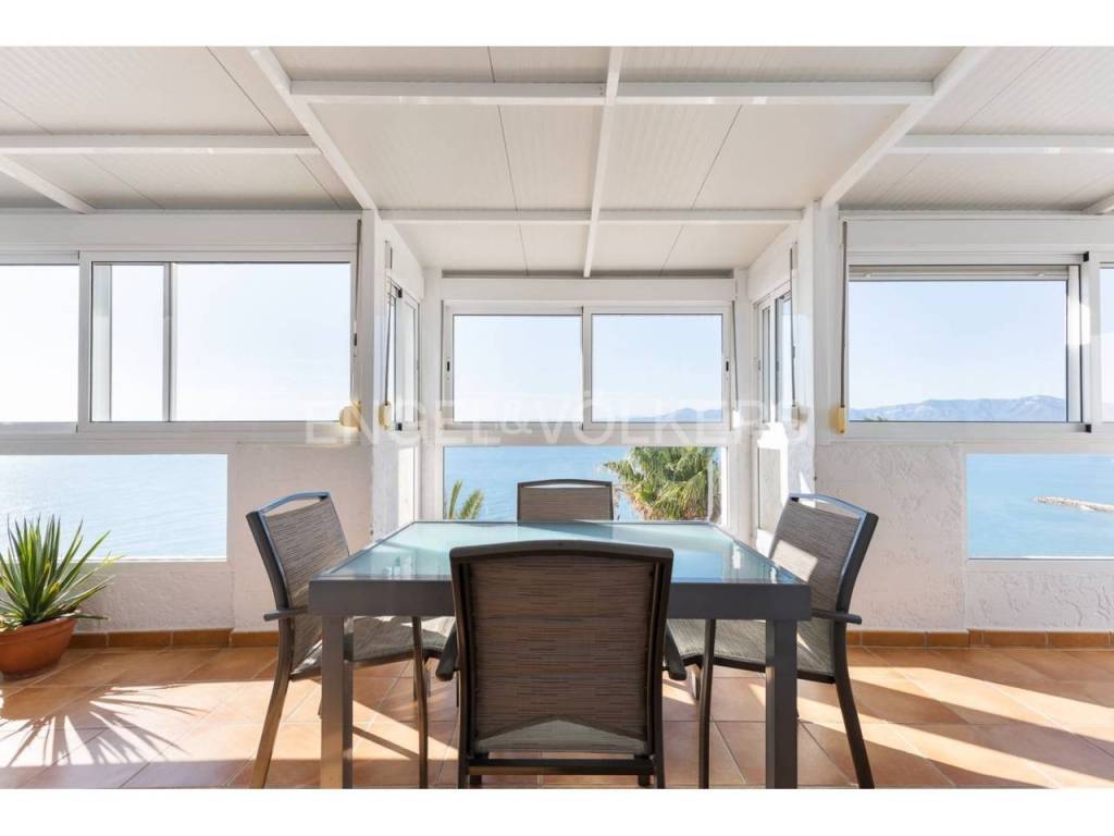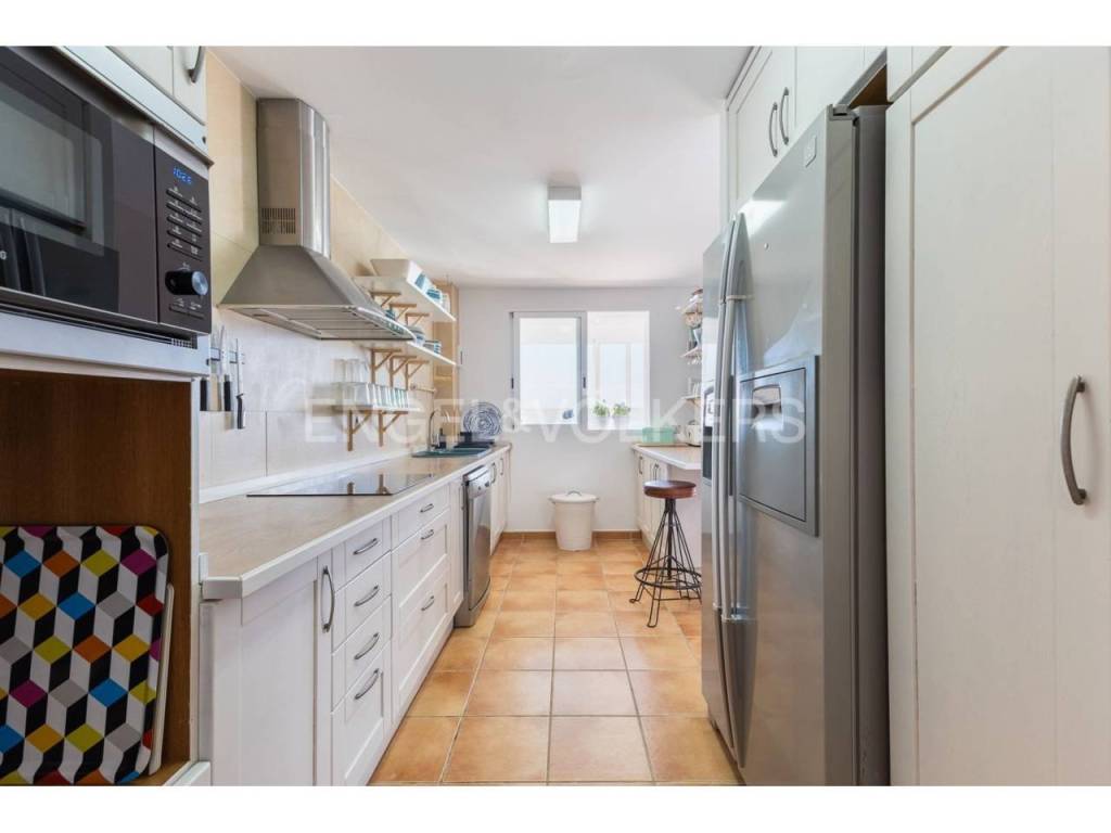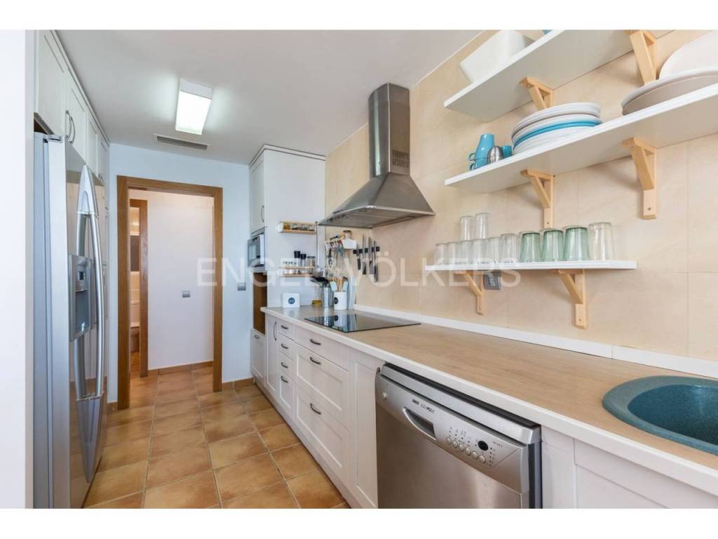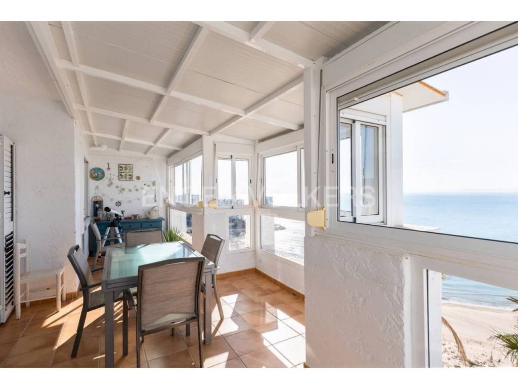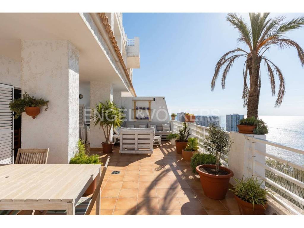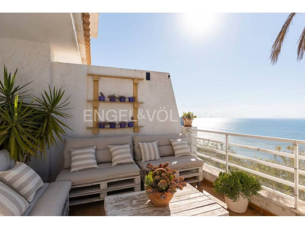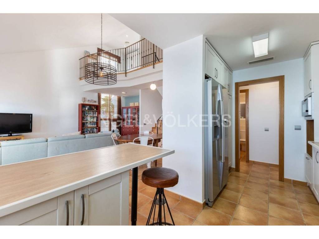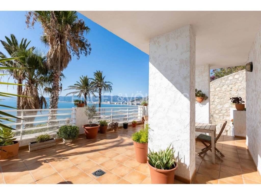 Exclusiva casa a la venta en la urbanización Punta Negra de Cullera, destacando sus impresionantes vistas por su ubicación elevada respecto al nivel del mar y a la vez no excesivamente alejada de la playa. La vivienda es muy espaciosa disponiendo de distintos ambientes para la comodidad y disfrute de cada rincón. Ubicada en una zona residencial muy tranquila, esta casa es ideal para quienes buscan espacio y entorno inigualable, así cómo adaptabilidad a personas con movilidad reducida, disponiendo de ascensor y montacargas privados en el interior de la vivienda. La casa se encuentra en excelentes condiciones, distribuida en varias alturas, todas ellas accesibles por escaleras y/o el ascensor privado. En el acceso a la propiedad desde la calle en la parte alta, encontramos el recinto de garaje-almacenamiento con entrada al montacargas que conecta con la primera planta en sentido descendente, a la cual también se puede acceder por la escalera exterior. En la primera planta en descenso encontramos el recibidor en altillo con vista al salón comedor, existiendo en este altillo una habitación dormitorio doble y el acceso al ascensor y a las escaleras que conectan las distintas plantas de la casa por el interior. En la planta de día se encuentra el salón-comedor muy luminoso, con salida a terraza cerrada con vistas espectaculares al mar. Junto al salón comedor se encuentra la cocina abierta, totalmente equipada, un cuarto de aseo de cortesía y la estancia lavadero. En la siguiente planta en el sentido descendente se encuentra la zona de noche, con tres habitaciones dormitorio dobles, una de ellas principal con cuarto de baño en suite, existiendo un segundo cuarto de baño en esta misma planta. Siguiendo el sentido descendente, en la siguiente planta encontramos una estancia multiusos de 40 m2, acompañada de un cuarto de baño con plato de ducha y salida a terraza abierta de 65 m2 con vistas al mar y el entorno. Un nivel por debajo de la última planta en sentido descendente existe un espacio cerrado, privado de la vivienda, actualmente diáfano con una superficie de 65 m2, el cual puede ser aprovechado para diversos usos. Desde el nivel inferior de la casa se accede directamente a la piscina comunitaria, la cual destaca por sus vistas y tranquilidad. La casa está acondicionada con climatización frío/calor por conductos, lo cual unido al excelente aislamiento térmico que aportan los ventanales de la casa, la convierte en ideal para la residencia en cualquier estación del año.
