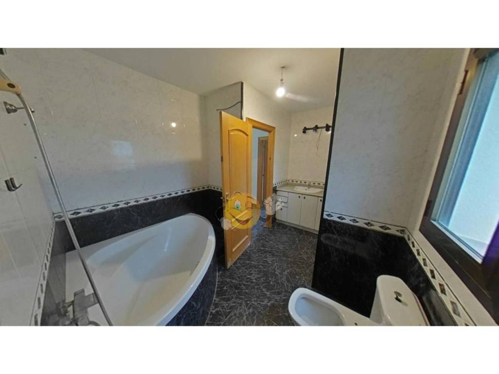 Consta de tres habitaciones dobles con salida a terraza, suelos de gres porcelánico, carpintería exterior de aluminio en color bronce, cocina de 12m amueblada con zona de lavadero contigua de 4m, baño completo con bañera, aseo de cortesía, puertas de madera tipo haya, garaje para dos coches, zona ajardinada alrededor de la finca, terraza y jardín.