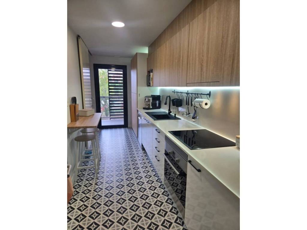 La cocina office, totalmente renovada, cuenta con dos accesos, desde el salón y desde el recibidor.