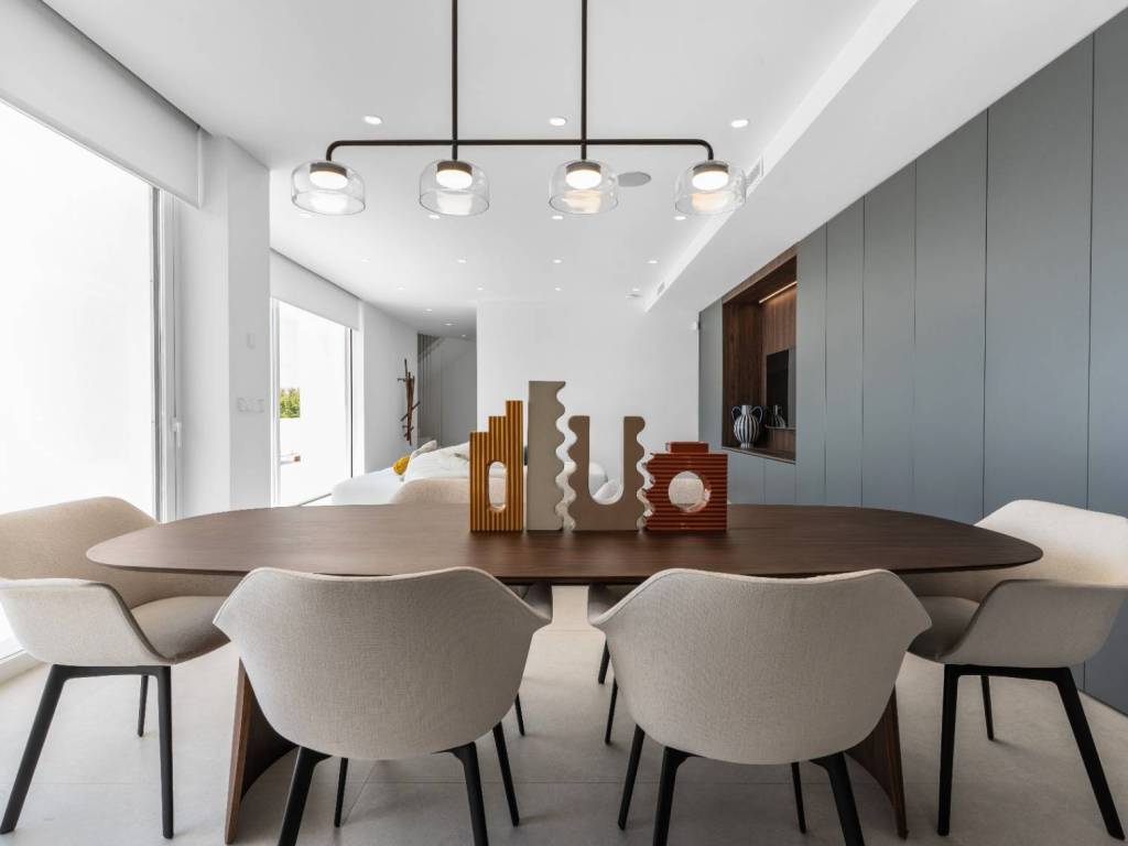 blanc19, an exquisite residence in altea, is a fourstorey house with a prime location between the blue sea and pine greenery. its design harmonizes with the landscape, offering impressive views of the mediterranean, coastal forests, and the urban profile of benidorm from its terraces—providing a unique experience every day.immediate occupancy and highend distributionthis villa comes fully furnished and decorated, ready for its owners to move in immediately. the multilevel structure is seamlessly integrated and connected by an elevator, allowing for distinct areas dedicated to rest, leisure, and socializing.main floor: features openplan common areas, including living room, kitchen, and dining room, all bathe in natural light.4 bedrooms: located on the upper and lower floors. the master bedroom, on the upper floor, serves as a private sanctuary with a spacious dressing room, freestanding bathtub bathroom and a private terrace.leisure and functionality: includes a dedicated leisure area (tv and pool table), office space, and storage rooms.parking: features a spacious garage with capacity for three vehicles and preinstallation for electric vehicle charging point (ev).style, finishes, and lifestylethe interior showcases a clean and mediterranean design, characterized by sandcolored floors, white surfaces, and large windows. blanc19 is built with highquality materials, efficient technical solutions, and all the essential elements for a comfortable and modern lifestyle.from the moment you enter the house, the landscape is always in view. warm sunsets, unobstructed views, and a constant sense of tranquility make this home a true reflection of luxurious mediterranean life.