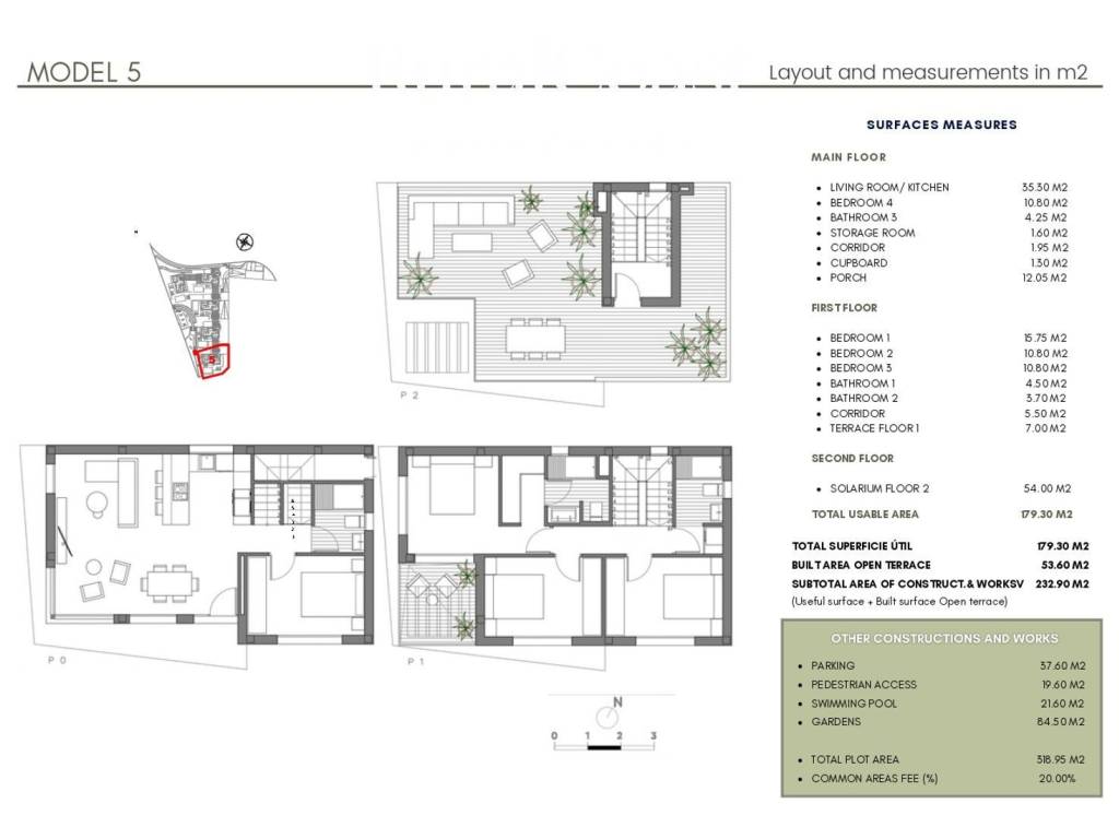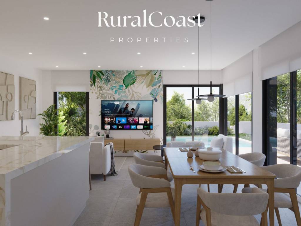 This elegant modern villa stands out for its contemporary architecture, functionality and seamless connection with the natural surroundings of Villajoyosa. With 179.30 m of usable space and a total built area of 232.90 m, it sits on a private 318.95 m plot, offering spacious, bright and well-distributed interiors.