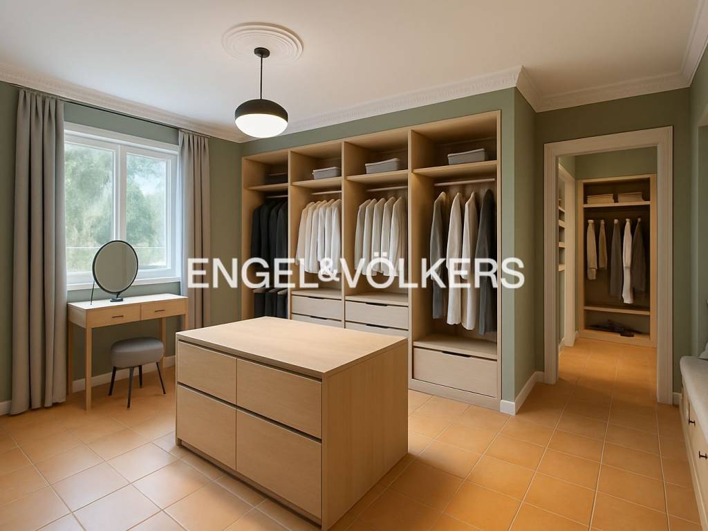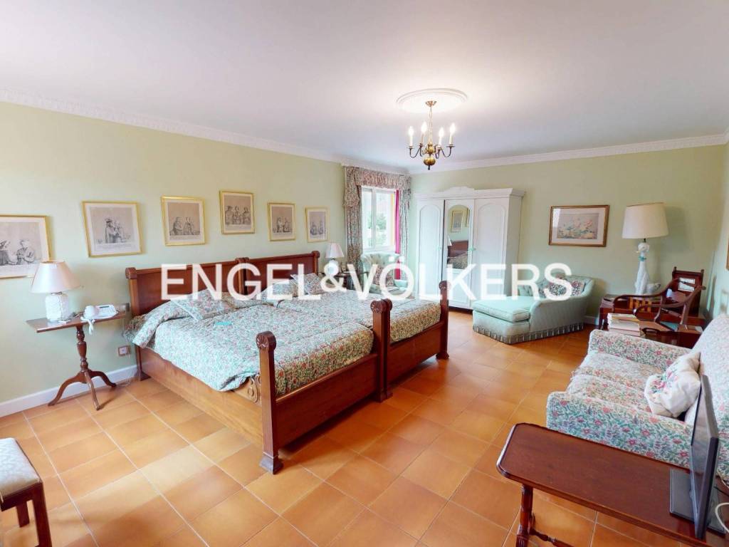 Upstairs is the other night area, with an extensive bedroom, dressing room, ironing room, bathroom, and sitting room.