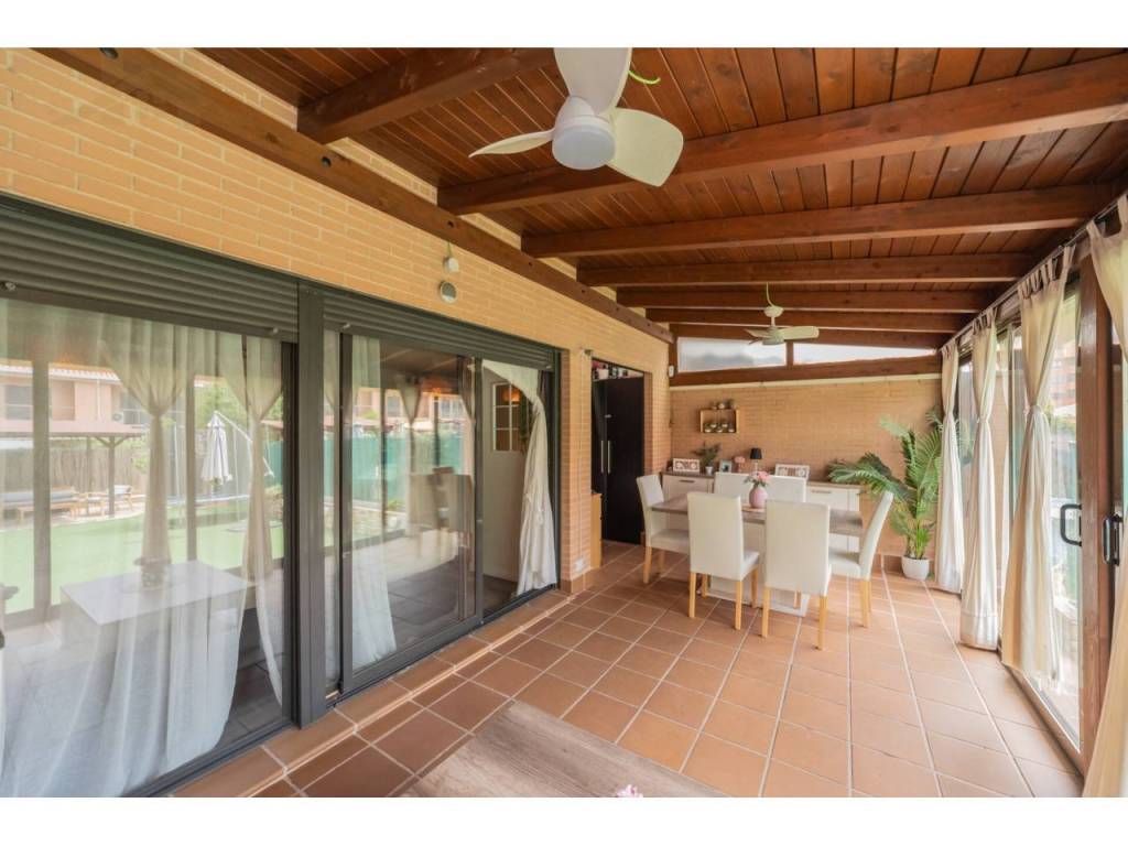 Total surface area 200 m², villa usable floor area 200 m², single bedrooms: 2, double bedrooms: 2, 3 bathrooms, air conditioning (hot and cold), age ebetween 10 and 20 years, built-in wardrobes, heating (natural gas), paving, ext. woodwork (wood), internal carpentry, kitchen, dining room, state of repair: reformed, garage (2), gas, garden (own), utility room, facing northeast, swimming pool (community), reinforced door, sunny, telephone, terrace, lands: stoneware, built-up, double glazing, lighting, inner courtyard.