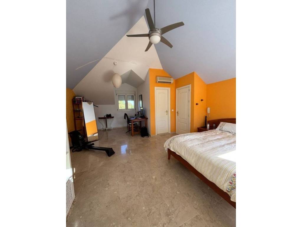 Magnificent independent Villa in Almensilla. Seville. The house has three floors, has a large basement with capacity for more than two cars, first floor where we can find a large living room with fireplace and views of the garden, three double bedrooms, two full bathrooms, a large kitchen equipped and furnished and everything this with access to the garden. In the attic we find a large bedroom with bathroom and large dressing room. Plot of 500 m2, with garden, private parking, covered porch, fruit trees. It also has 14 solar panels, tilt-and-turn windows, thermal insulation, air conditioning, well.