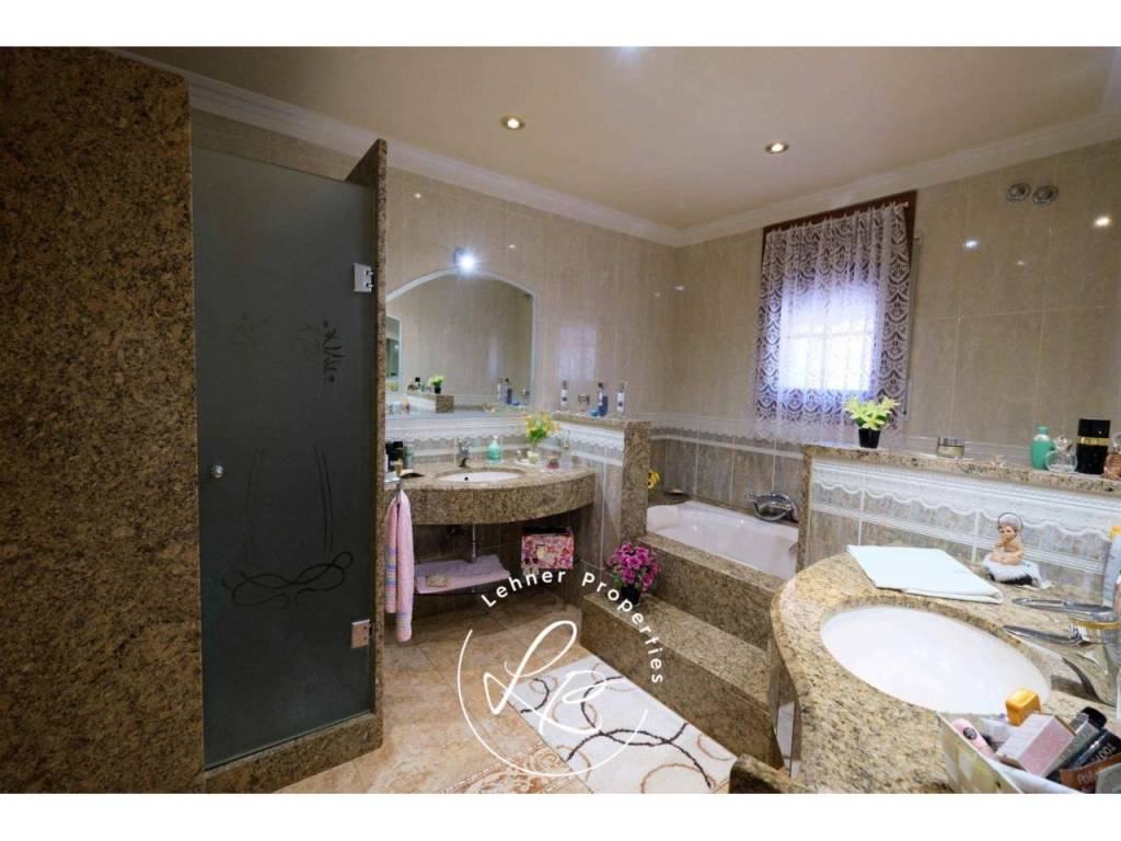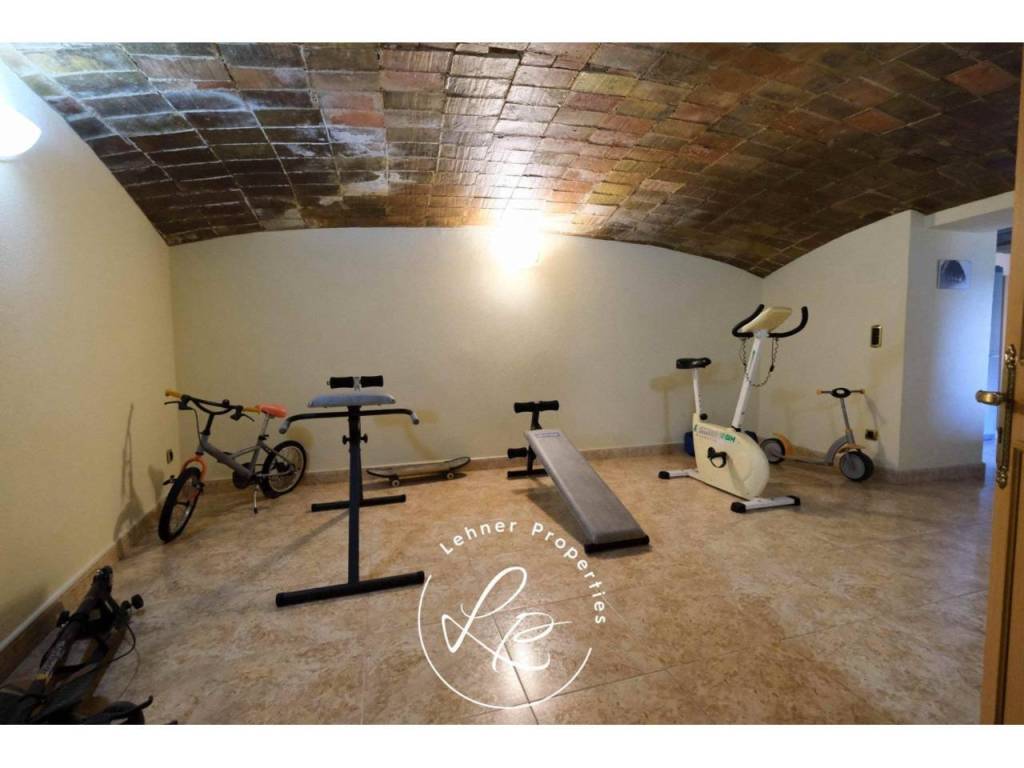 The ground floor consists of a separate appartment with a small kitchen with direct access to the garden, a dining room, a full bathroom with shower, a large living room with Catalan vaults (currently used as a gym) and a suite with bathroom and dressing room, as well as a garage for two cars, pantry, storage room and machine room.