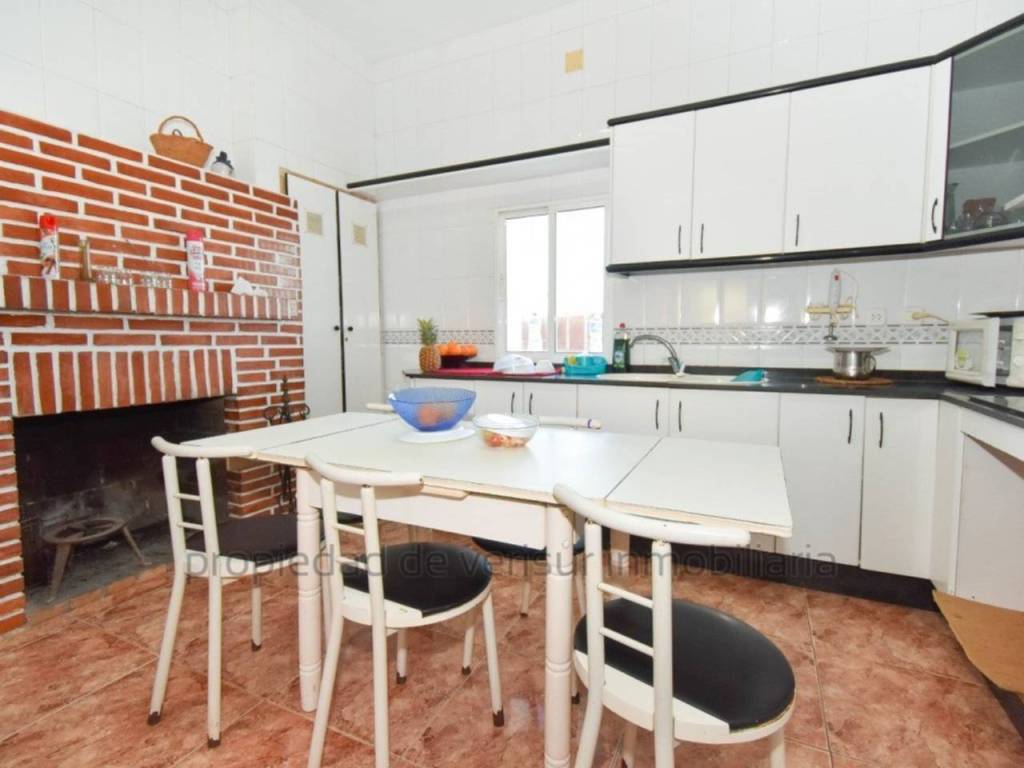 Downstairs we find a cosy living room, 3 bedrooms, a beautiful kitchen with fireplace that invites incredible winter afternoons, a full bathroom and a patio with another room in the mezzanine, perfect as a study, storage room or small extra room.