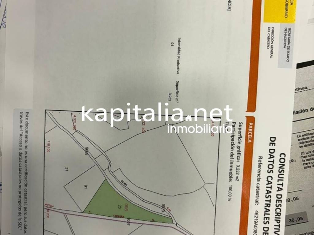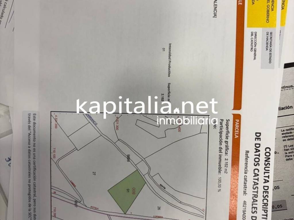 CAMPO DE NARANJOS A LA VENTA EN ROTGLA-CORBERASe venden 2 parcelas juntas de naranjos de aproximadamente unas 7 hanegadas, de la variedad Navelina y clementinas, con árboles en plena producción, con sistema de riego por goteo, con programador de riego Venturi, y que dispone de 5 acciones de agua del pozo.Se accede muy cómodamente desde la carretera por camino asfaltado, y siendo este camino de muy fácil acceso y de paso tanto de gente, como de ruteros que hacen senderismo.APROVECHA ESTA OPORTUNIDSD DE TENER TU PROPIUO TERRENO CON MUY POCA INVERSIÓNPor orden expresa del propietario, Kapitalia Inmobiliaria comercializa este inmueble en exclusiva. Con ello garantizamos un servicio de calidad, eficaz, rápido, seguro y sin interferencias de terceros. Si usted es agencia inmobiliaria y tiene un cliente para este inmueble, puede contactarnos; estaremos encantados de colaborar en ésta y otras operaciones.Kapitalia InmobiliariaAlbereda Jaume I, 19, 46800 Xativa96 228 78 85www.kapitalia.net