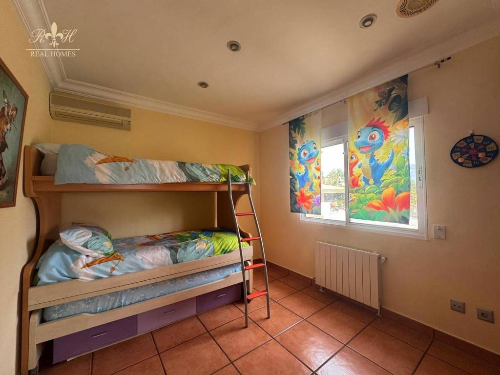 Outside, the property offers a beautifully lit garden, a swimming pool with an island and waterfall, an automatic irrigation system and a fully equipped barbecue area with kitchen and bathroom.