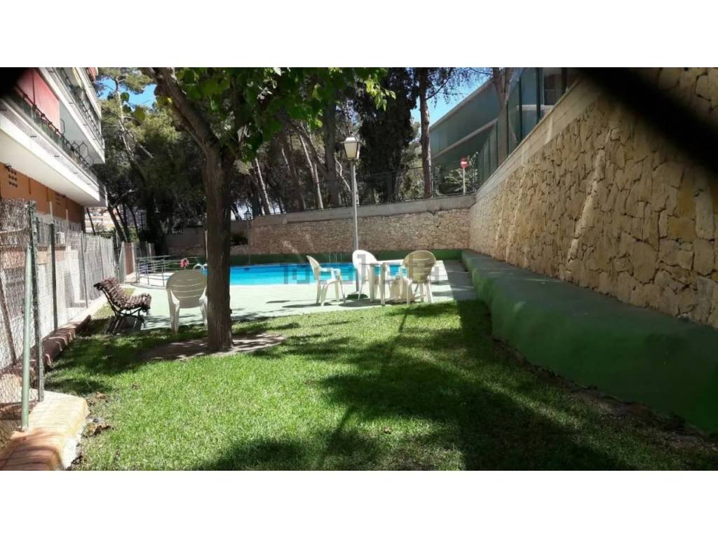 Communal areas with swimming pool and green areas.