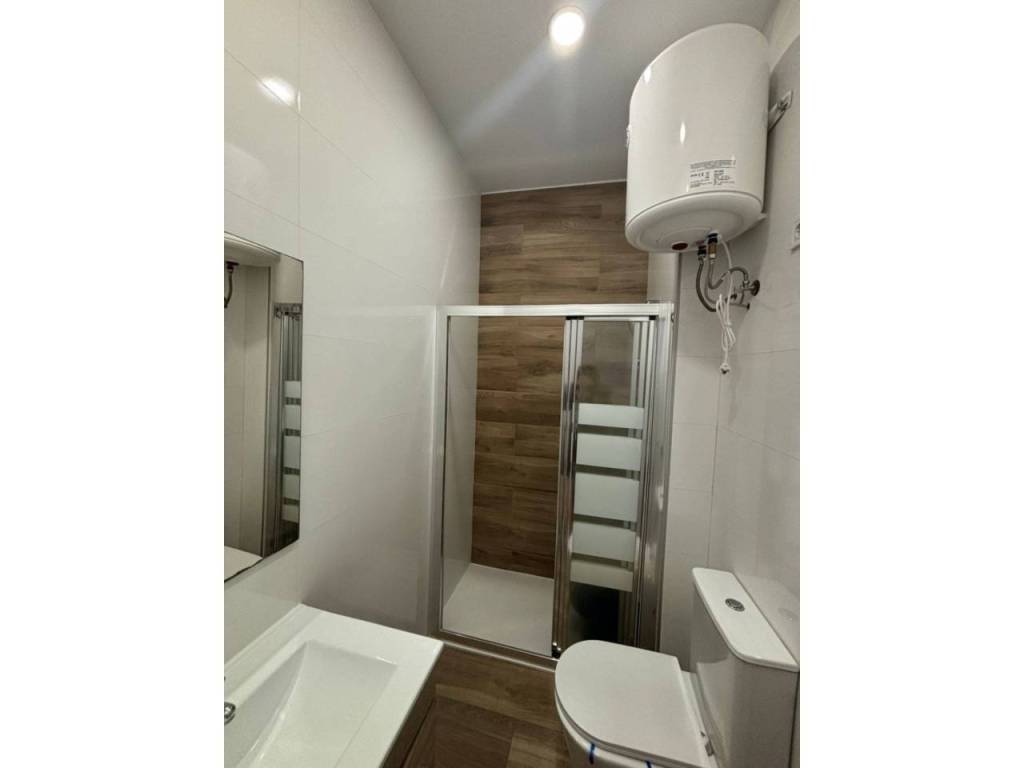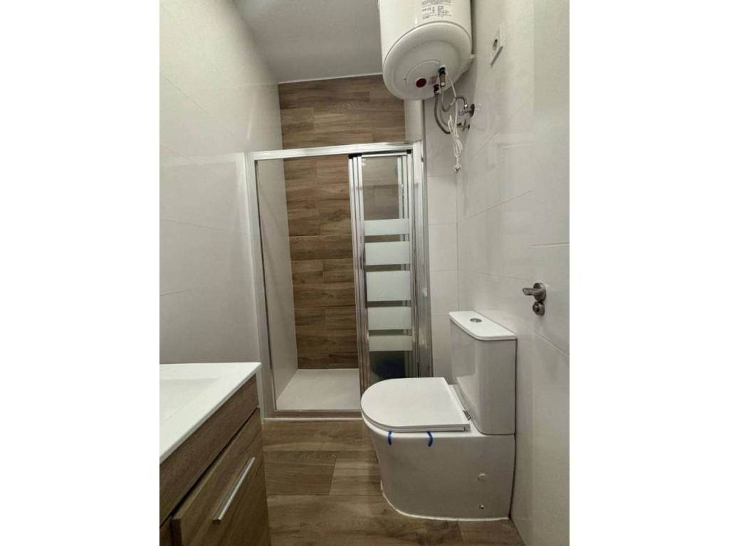 El salón, que se integra con una moderna cocina americana, se convierte en el corazón del hogar, ideal para compartir momentos inolvidables con amigos y familiares. El cuarto de baño, equipado con ducha, ha sido diseñado con un estilo contemporáneo que invita a relajarse después de un largo día. Las paredes lisas y las puertas lacadas en blanco aportan un toque elegante y minimalista al ambiente.