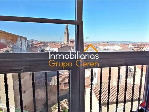 PISO SEMIAMUEBLADO CON GARAJE Y TRASTERO, SOL DE TARDE Y EN PLENO CENTRO Para amantes del centro, en zona residencial con vistas a la torre de la catedral, ven a descubrir este coqueto piso de 3 habitaciones, la principal con salida a terraza, salón con salida a terraza, cocina (no completa) y dos baños. Se completa con garaje en sótano con acceso directo y trastrero en bajocubierta con tarima y ventana velux. Ascensor a pie de calle, suelos de parquet, puertas de roble, paredes lisas, ventanas de aluminio con climalit y ACS y calefacción individual de Gas Natural (caldera nueva). Se vende semi-amueblado, excepto objetos personales y decorativos. Solicita tu cita sin compromiso, llámanos y reserva. Seguro que te encantará.