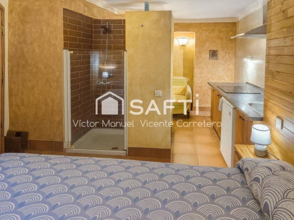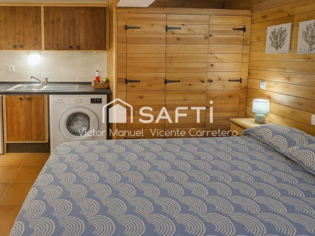 Dentro de la vivienda encontramos 2 apartamentos de 1 dormitorio y 1 estudio, todos ellos con baño y cocina. Las 3 estancias cuentan con aire acondicionado con bomba de calor con split y contadores independientes de agua y electricidad, tras el contador general, pudiendo dividir los consumos con facilidad. Todo ha sido reformado, incluyendo las instalaciones de agua y electricidad, además los muebles están incluidos en el precio.
