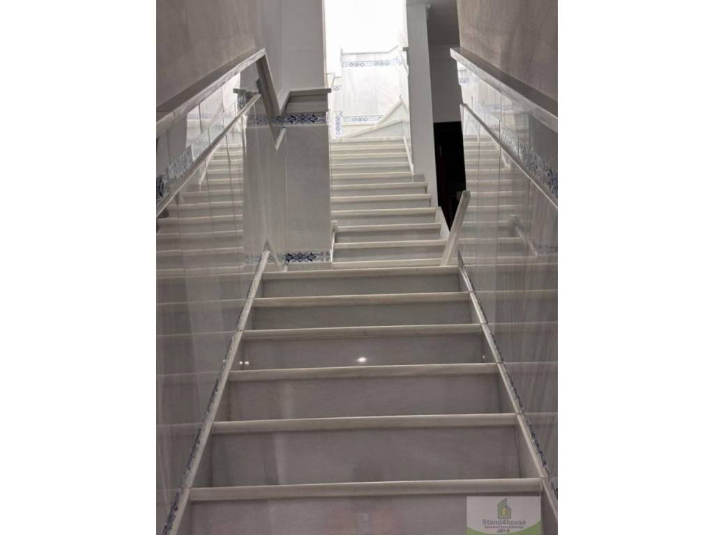 Por las escaleras de mármol se accede a la primera planta con tres amplias habitaciones con armarios empotrados y un baño completo.
