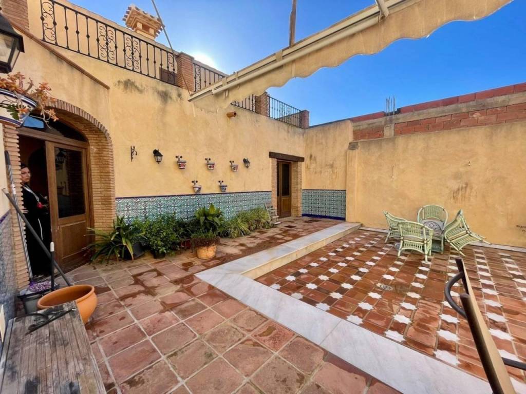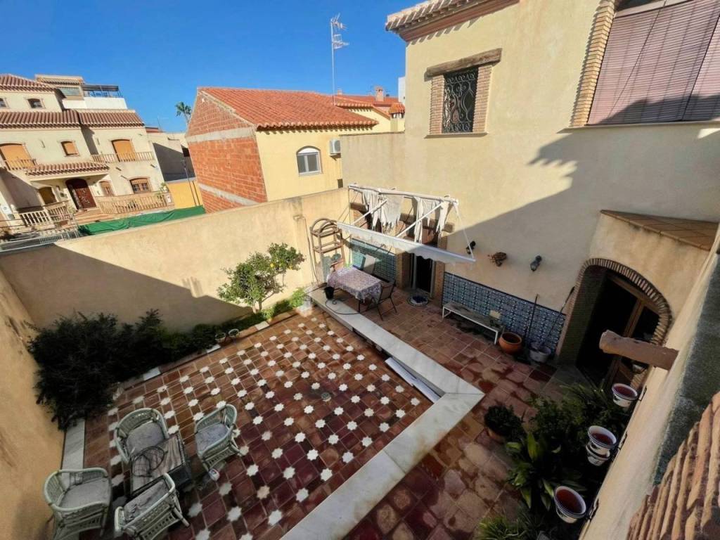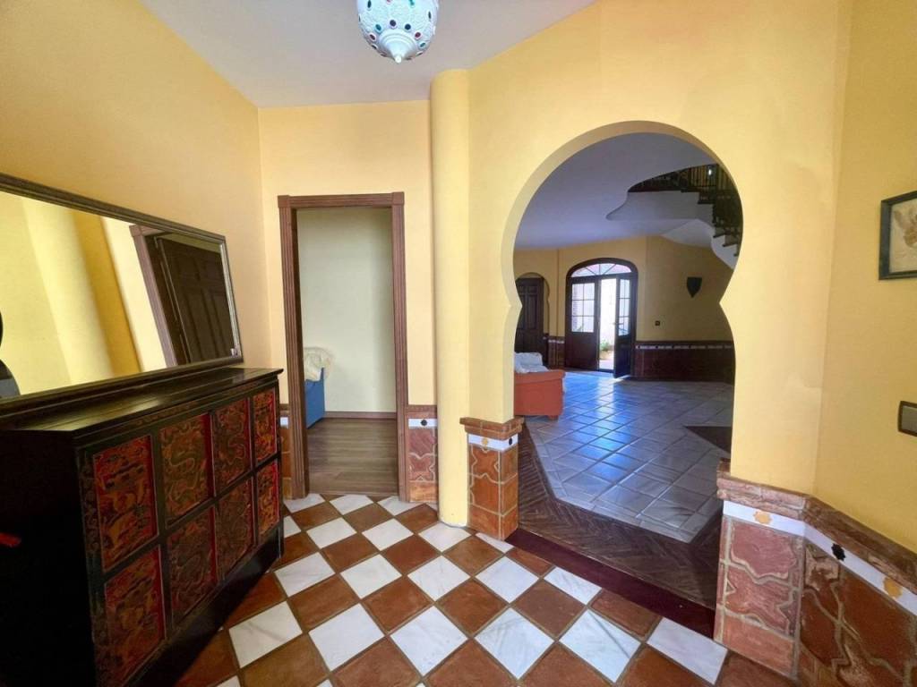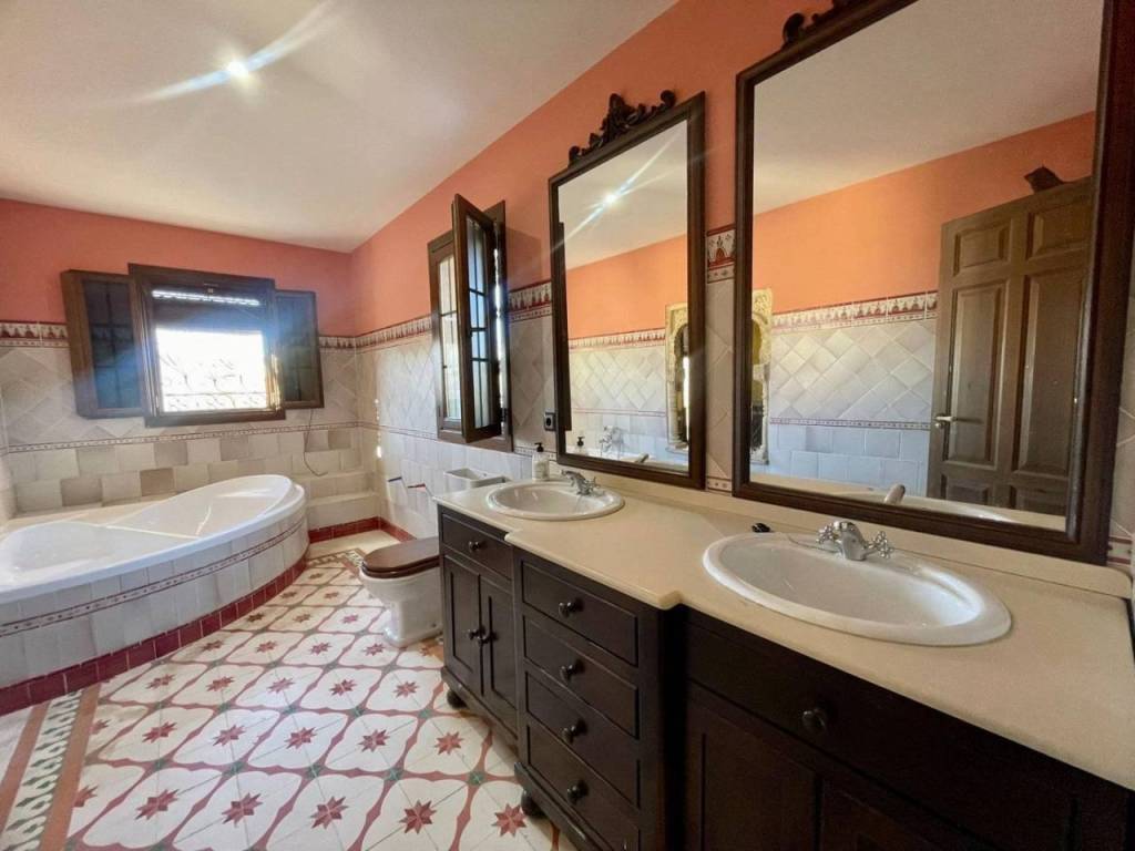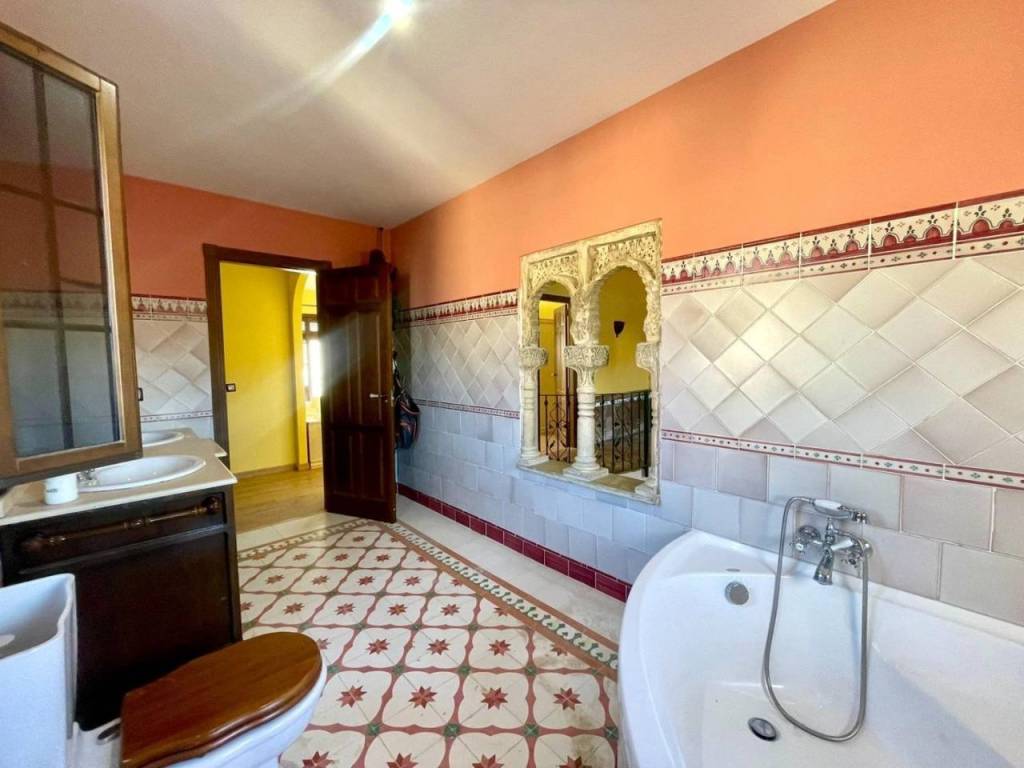 El baño completo presenta azulejos seleccionados personalmente por la propietaria manteniendo os motivos andaluces y árabes; además cuenta con plato de ducha redondo fabricado en mármol blanco. Acceso desde la propiedad a un amplio garaje , con espacio para vehículo y almacenaje.