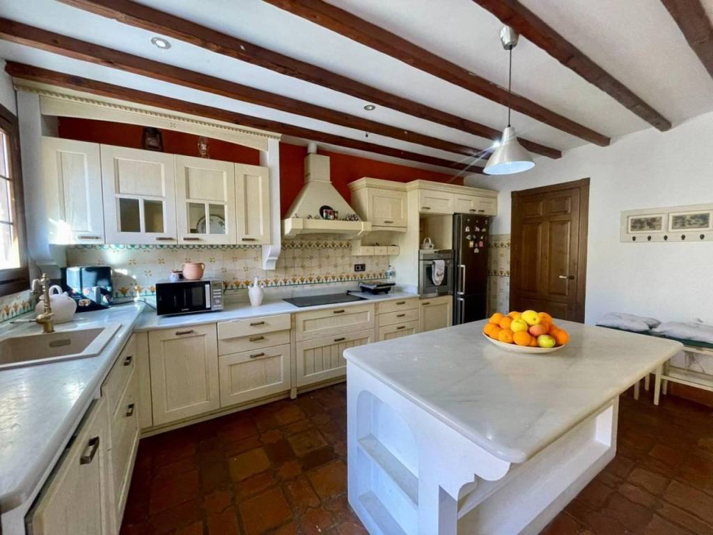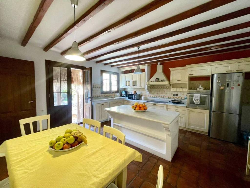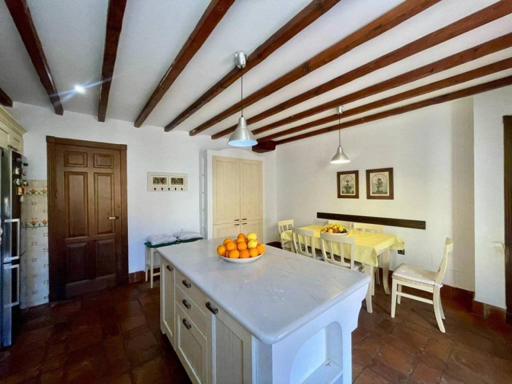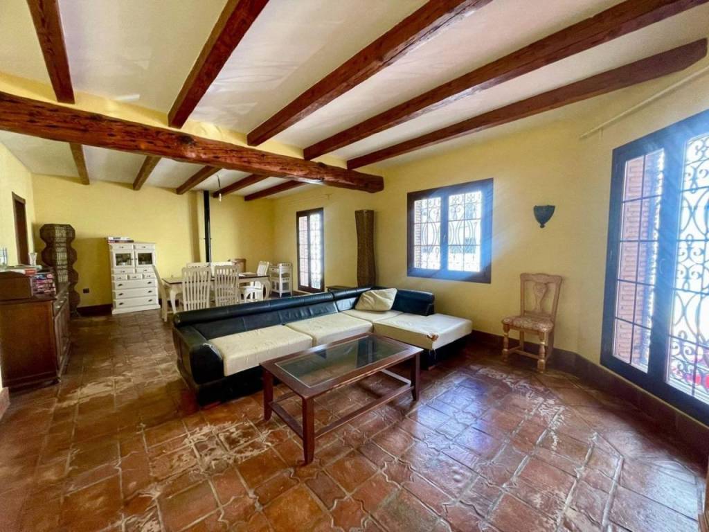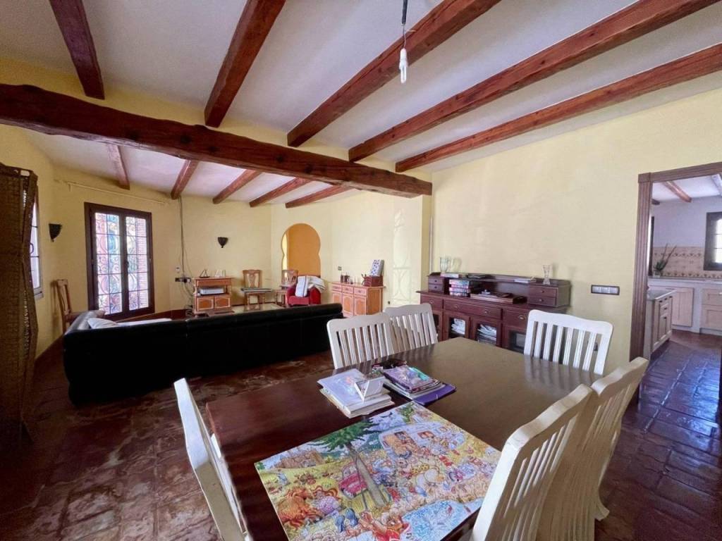 En la planta baja encontrarás un acogedor dormitorio para invitados , un amplio salón-comedor equipado con chimenea a leña rodeada por vigas de madera que aportan calidez al ambiente. La cocina independiente destaca por su amplitud e incluye abundante espacio para almacenamiento, con encimera de mármol ,desde aquí se accede a un hermoso patio interior ideal para disfrutar momentos familiares o incluso instalar una piscina privada, una habitación adicional usada en la actualidad como sala de estar.