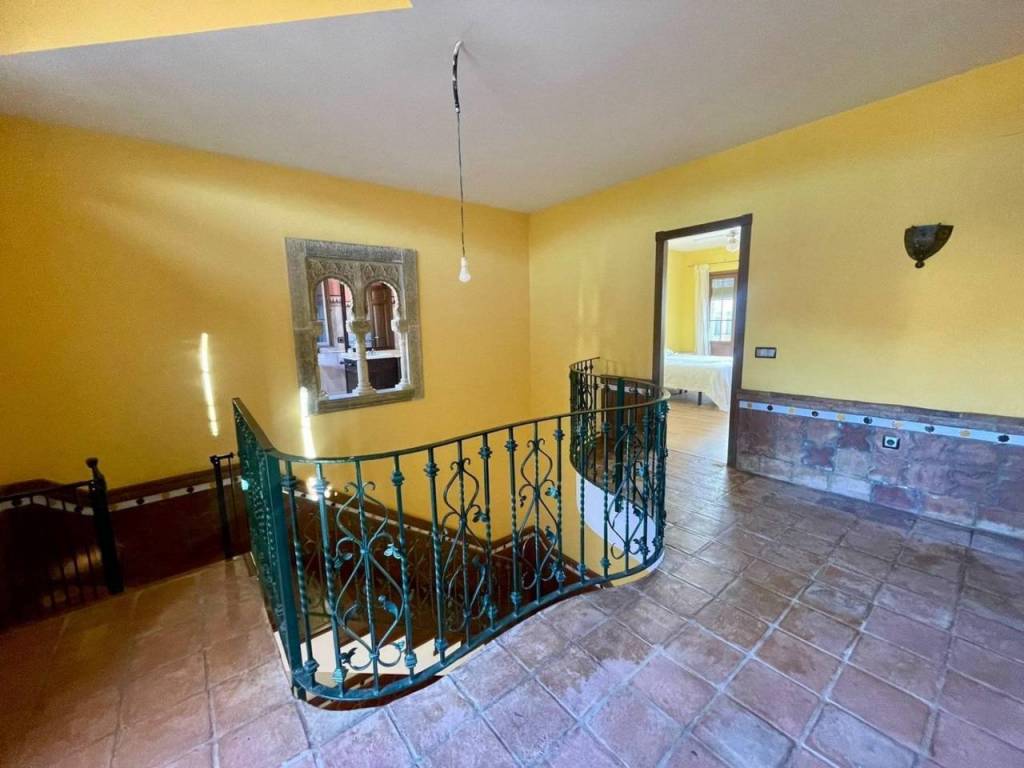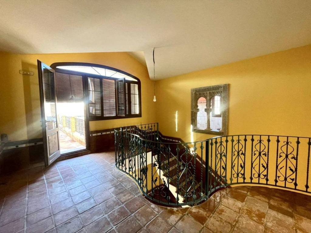 La primera planta está magistralmente diseñada: las impresionantes escaleras curvadas conducen hacia los dormitorios donde destaca el principal gracias a su tamaño espacioso e iluminación natural óptima adyacente a elegante baño suite decorado también bajo influencias árabe y con vestidor