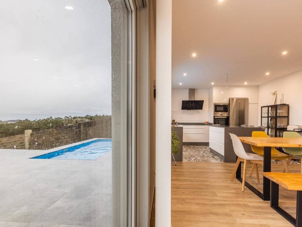 Best House in the Sun exclusively presents this spectacular designer villa with swimming pool, set on a fully enclosed 3,600 m2 plot in Morás, Arteixo, just 10 minutes from A Coruña, surrounded by nature and fresh air.The main floor (100 m2) features a spacious open-plan living area combining a fully equipped kitchen with island and a bright living-dining room with direct access to the terrace and pool. This level also offers three bedrooms with built-in wardrobes, including a master bedroom with en-suite bathroom, plus a second full bathroom.Outside, there is a designated area ready for installing a barbecue.Key features include wood-effect ceramic flooring, tilt-and-turn windows, Climalit sliding doors ensuring excellent thermal and acoustic insulation, and underfloor heating powered by aerothermal energy.The lower ground floor (also 100 m2) comprises a laundry area, gym, storage room, pool machinery room, and approximately 70 m2 of open-plan space that can be adapted to any desired use.The rustic 3,600 m2 plot is fully fenced and benefits from both well water and mains water supply, as well as a connection to the sewage system. Additionally, the property includes a second house to renovate, currently unregistered but with all the necessary documentation in place to complete registration.Without a doubt, this is the ideal property to establish your home in a peaceful natural setting, where you can enjoy spectacular sunsets every day and truly unwind.Request a viewing with no obligation before its gone.