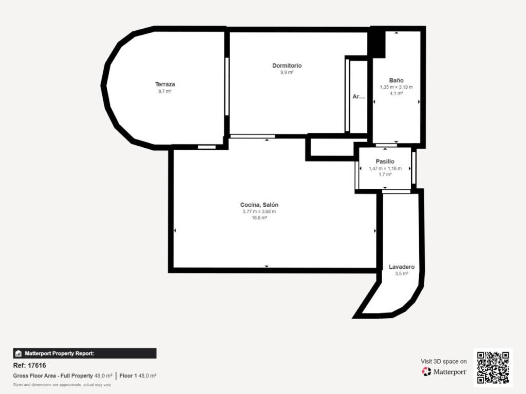 El apartamento dispone de 1 habitación doble, 1 baño completo, cocina totalmente equipada y se encuentra en buen estado de conservación. Destaca por su orientación oeste, lo que garantiza una excelente entrada de luz natural durante gran parte del día, creando un ambiente cálido y luminoso. Además, cuenta con suelo de gres y carpintería exterior de aluminio, materiales prácticos y de fácil mantenimiento.