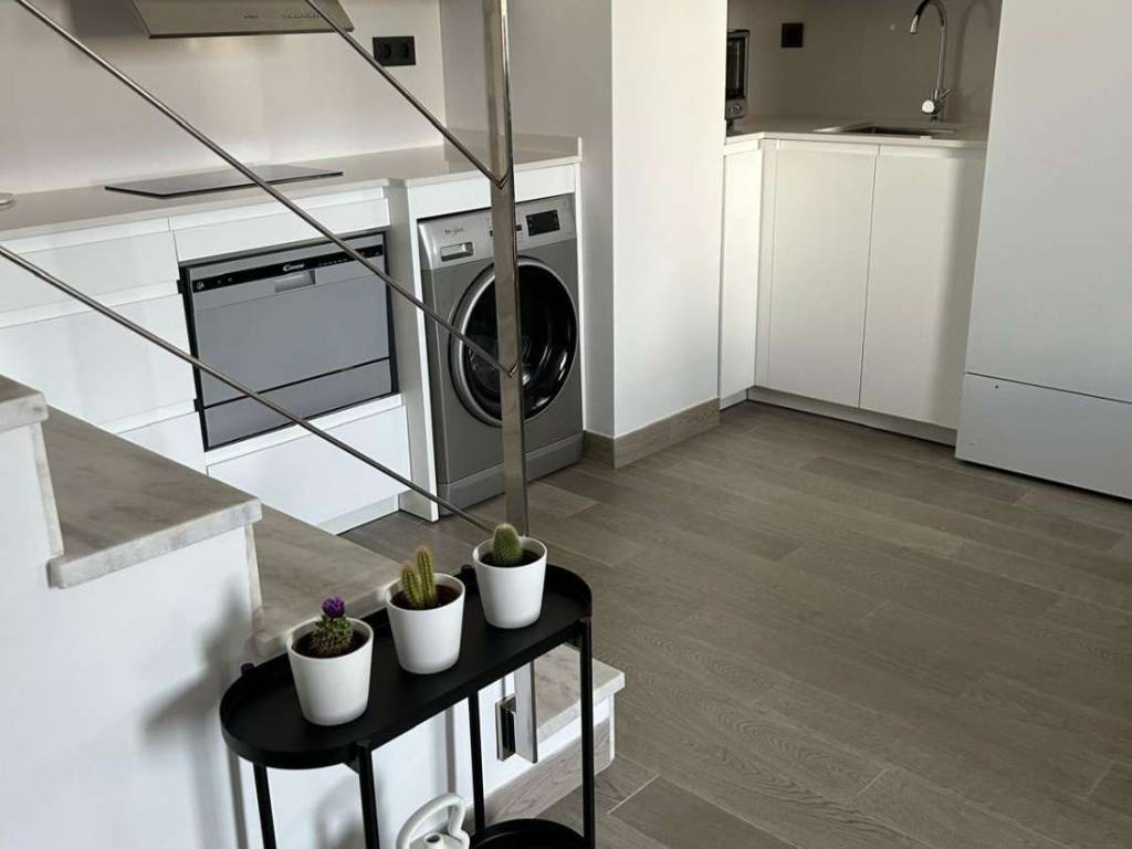The main floor opens into a spacious and inviting open-plan area that combines living room, dining area, and an American-style kitchen, creating a modern and functional atmosphere. This level also features a full bathroom with a walk-in shower and access to an uncovered terrace of 9.7 m, ideal for relaxing outdoors, enjoying the Mediterranean climate, and taking in open views.