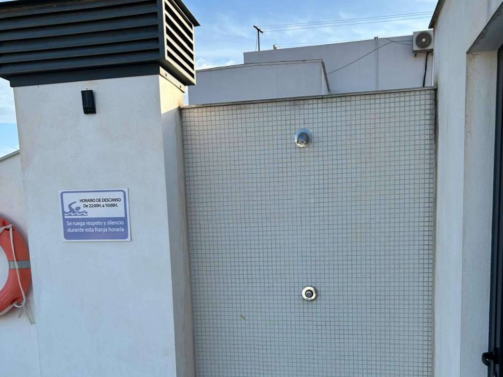 The upper floor comprises two bedrooms, one of which is currently used as a walk-in dressing room, along with a second full bathroom with a shower. From this level, stairs lead to a second uncovered terrace of 7.6 m, offering direct access to the communal rooftop swimming pool. This exclusive space features open views and a restroom area, perfect for leisure and relaxation.