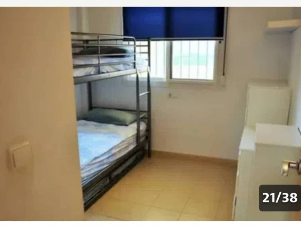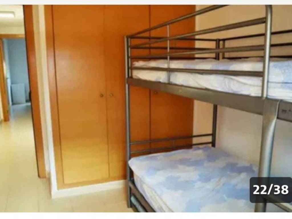 2 dormitorios: uno con cama de matrimonio y otro con litera triple.