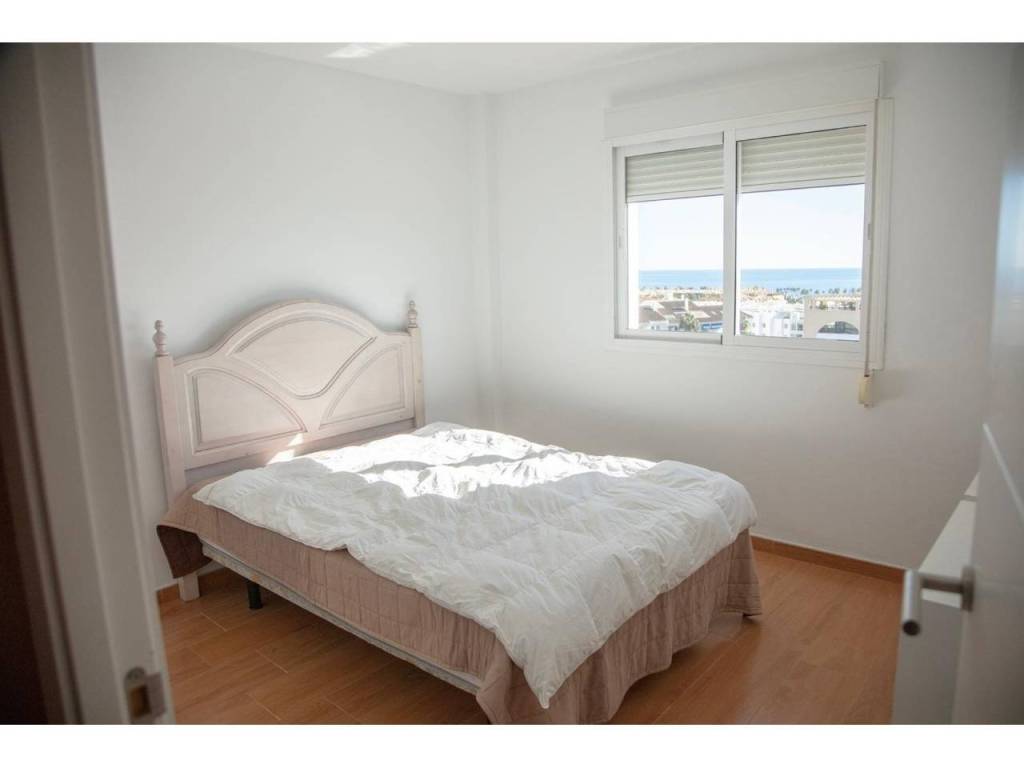 La vivienda dispone de 92 m2, distribuidos en tres dormitorios amplios, un salón luminoso con cocina abierta y vistas al mar tanto desde la zona de día como desde los dormitorios.