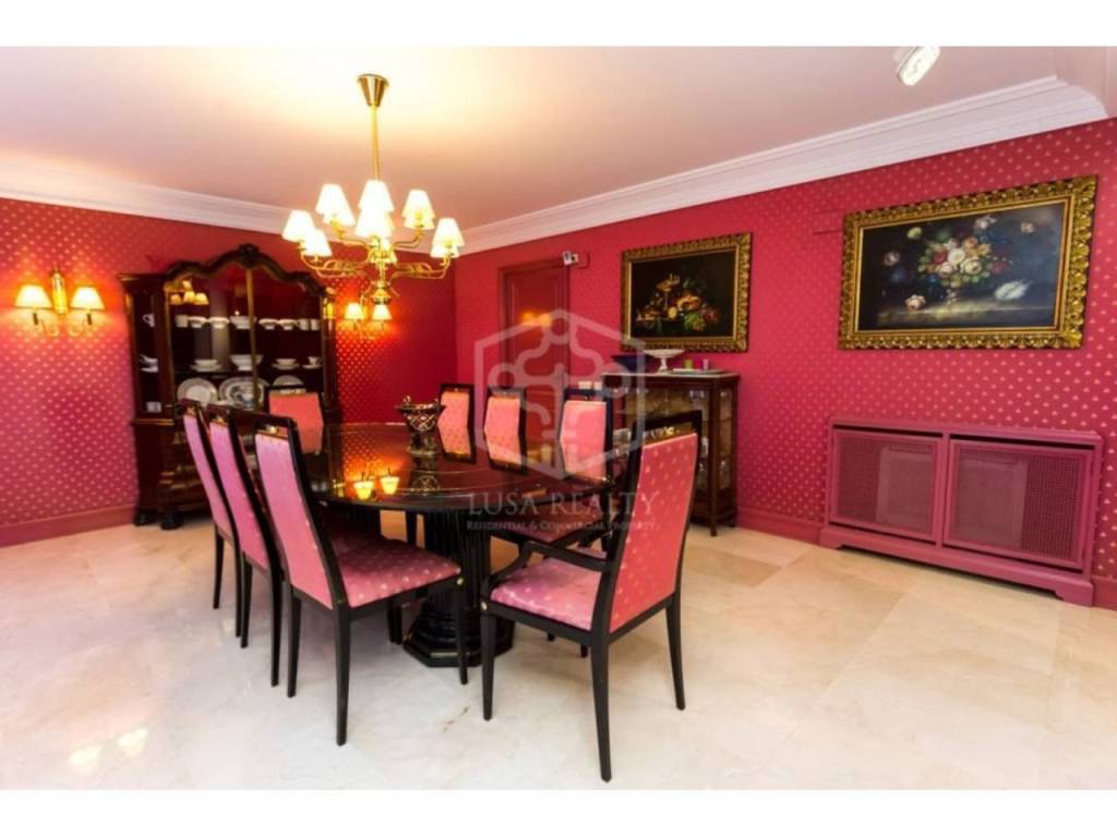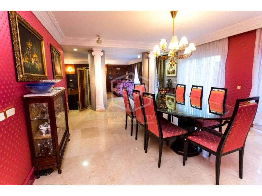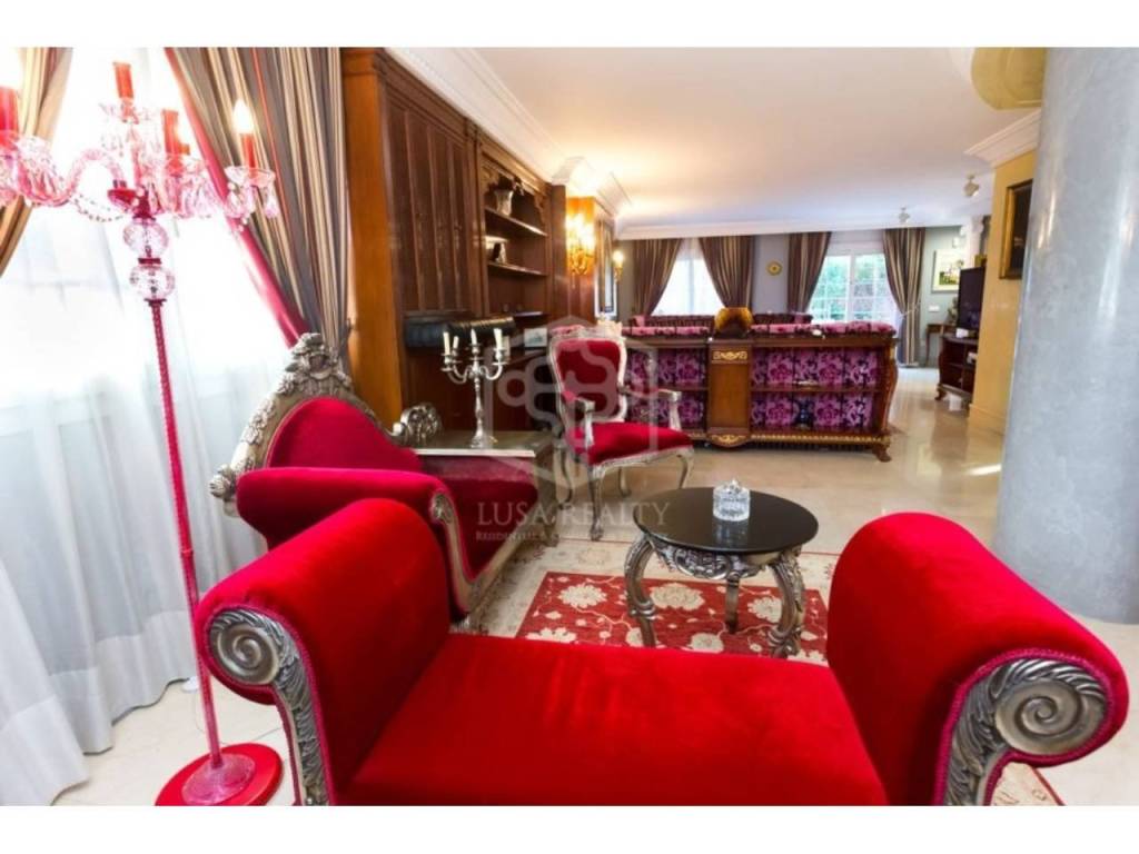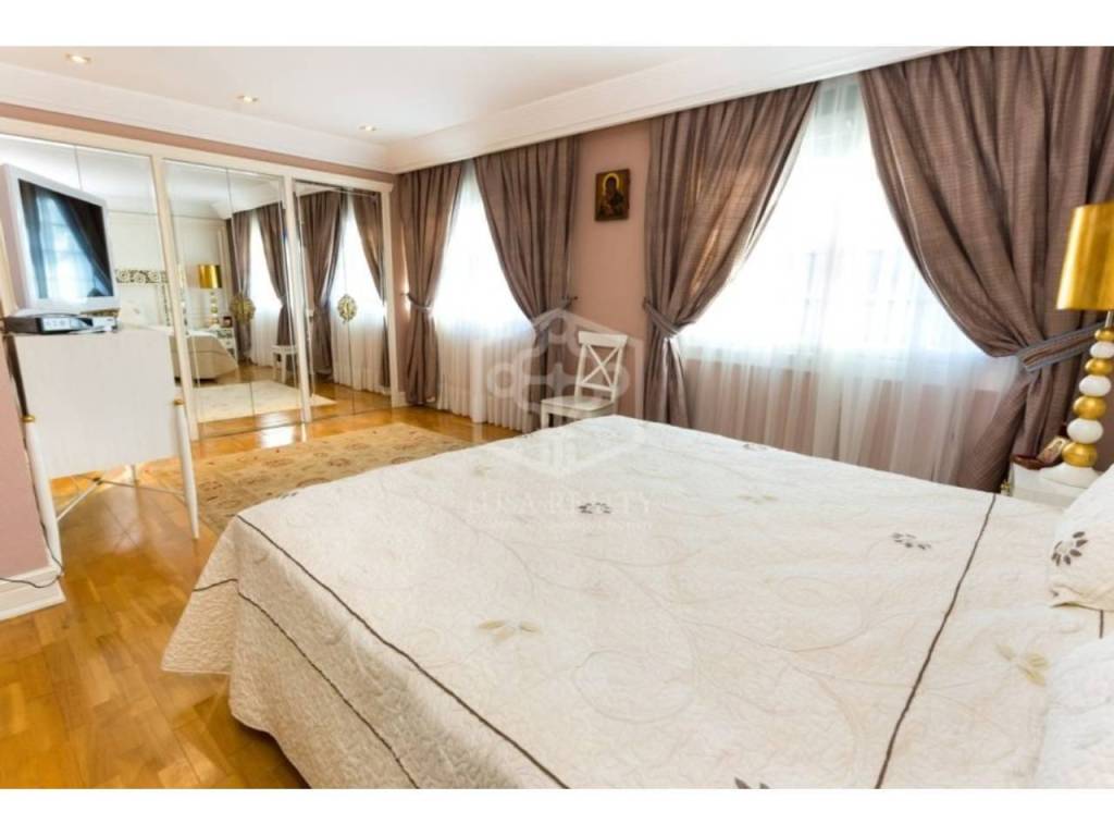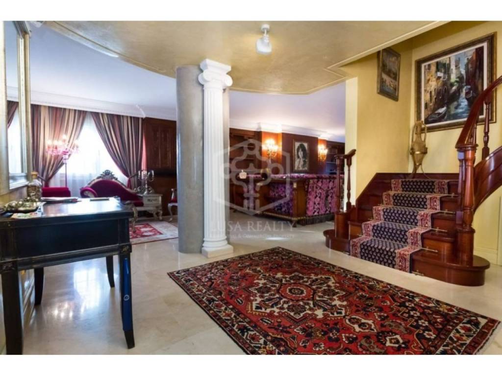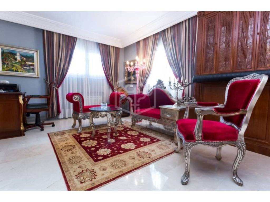 Особую парадность дому придает отделка мрамором, колонны, темное дерево. В декорациях присутствуют драпировка в бордовых тонах, позолота, антикварная мебель и картины. В доме сделан ремонт в 2024 г., включающий полную замену инсталляции электрики, установку водяного отопления, полную замену аэрокондиционеров, гаражные ворота и ремонт гаража.