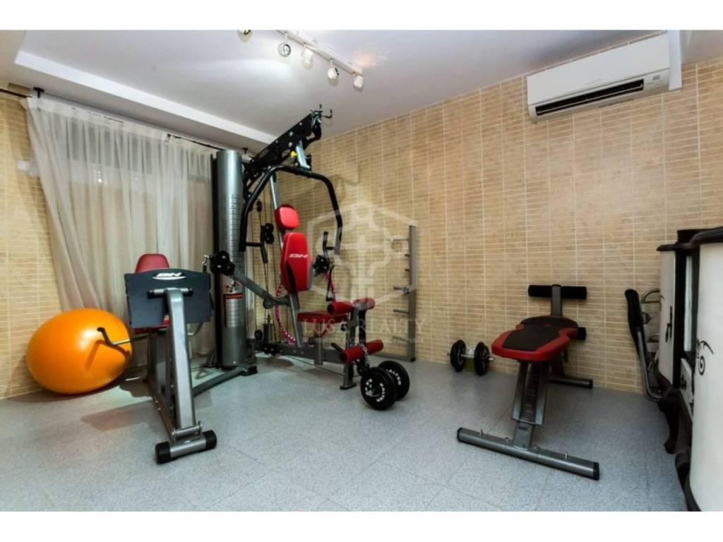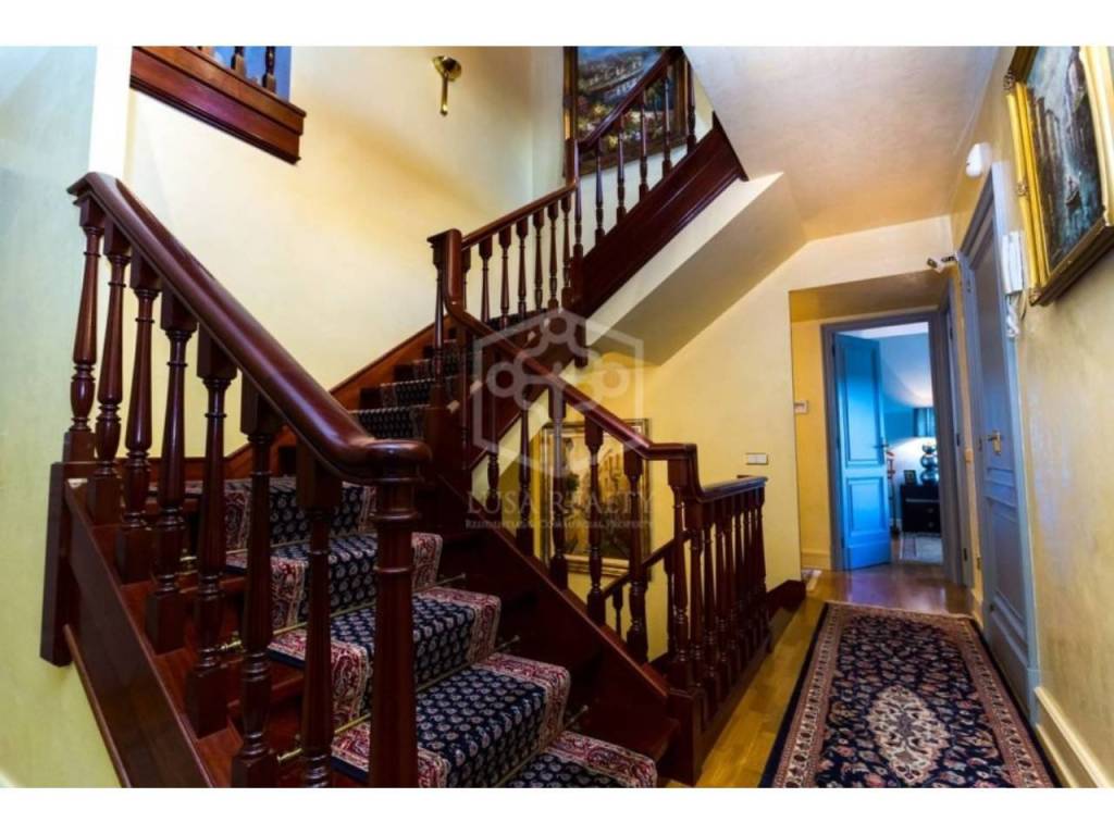Дом расположился на тихой улочке и представляет собой угловой таунхаус с участком земли. Строительная площадь составляет чуть больше 500 м2, включая цокольный этаж 105 м2, оборудованный под винный погреб, тренажерный зал; гараж на 3-4 автомобиля.