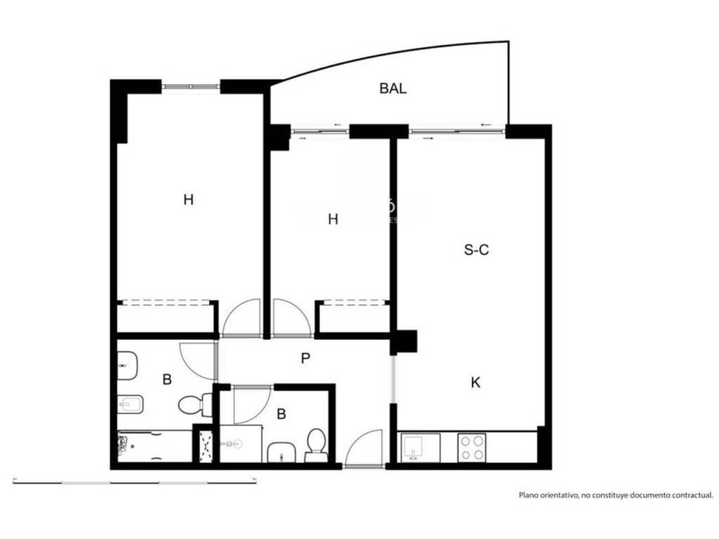 Dispone de dos habitaciones luminosas, perfectas para el descanso, y dos baños completos, lo que aporta comodidad y privacidad tanto para residentes como para invitados. El salón es amplio y acogedor, con espacio suficiente para zona de estar y comedor, y se integra con una cocina práctica y bien equipada.