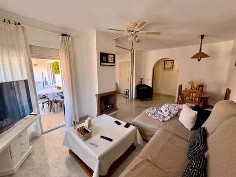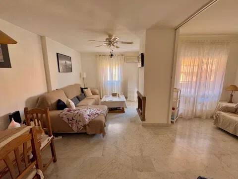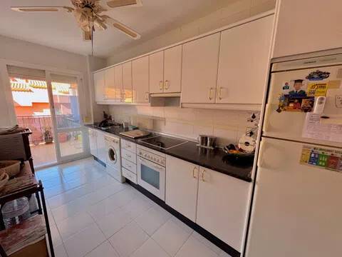 **Piso Amplio y Luminoso en Urbanización Cerrada - Ideal para Tu Nueva Vida** Descubre este espectacular piso de 99 m², situado en una urbanización cerrada que ofrece tranquilidad y comodidad. Con un salón independiente que se llena de luz natural, este hogar es perfecto para disfrutar de momentos en familia o recibir a amigos. La gran cocina, equipada y funcional, cuenta con salida directa a la terraza, donde podrás relajarte mientras disfrutas del aire fresco. El piso cuenta con tres dormitorios, uno de ellos ingeniosamente integrado al salón mediante un biombo, lo que proporciona un espacio versátil y acogedor. Además, dispone de dos baños completos, ideales para mayor comodidad. Los armarios empotrados ofrecen un amplio espacio de almacenamiento, manteniendo todo ordenado y al alcance. La urbanización destaca por sus hermosos jardines y su piscina con vistas a la costa, perfectos para disfrutar en los días soleados. Situado en una primera planta exterior con ascensor y orientación oeste, este piso garantiza luminosidad durante todo el día. Aunque no cuenta con calefacción, el aire acondicionado asegura un ambiente fresco en verano. No dejes pasar la oportunidad de vivir en este encantador piso de segunda mano, en buen estado y construido en 1992. ¡Ven a visitarlo y enamórate de tu nuevo hogar!