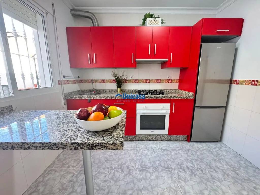 Luminoso piso en casa mata con gran terraza y solárium en Puerto de la Torre Se vende estupenda primera planta de casa mata con división horizontal, ubicada en una tranquila calle peatonal del corazón de Puerto de la Torre. A tan solo 5 minutos a pie de la avenida principal, esta vivienda combina comodidad, amplitud y una excelente ubicación. Con una superficie construida de 89 m2, el piso se distribuye en tres habitaciones (dos de ellas dobles), un baño completo con bañera, y una moderna cocina americana abierta al salón, ideal para disfrutar de un espacio amplio y luminoso. La vivienda destaca por su orientación sur, que garantiza una abundante luz natural durante todo el día. Además, cuenta con una agradable terraza de aproximadamente 15 m2 y un amplio solárium privado de unos 40 m2, perfecto para reuniones al aire libre, tomar el sol o relajarse. En el solárium se encuentra también una habitación adicional que ofrece múltiples usos: trastero, despacho, sala de juegos, etc. Una oportunidad única de vivir en una zona tranquila pero muy bien conectada, con todos los servicios a mano. En cumplimiento del decreto 218-2005, de 11 de octubre, por el que se aprueba el reglamento de información al consumidor en la compraventa y arrendamiento de viviendas en Andalucía, se informa al cliente que los gastos notariales, registrales, impuestos que le sean de aplicación (ITP ó IVA + AJD) y otros gastos inherentes a la compraventa no están incluidos en el precio. La información facilitada es orientativa, no tiene carácter vinculante y carece de valor contractual. Dicha información puede haber sufrido modificaciones que aún no han sido incorporadas. Le sugerimos se ponga en contacto con nosotros para obtener los últimos datos y/o confirmar los aquí expuestos. Los honorarios inmobiliarios SI están incluido en el precio.