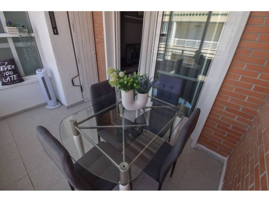 La vivienda cuenta con un luminoso salón con cocina integrada totalmente equipada (microondas incluido), un dormitorio cómodo, baño completo y un agradable balcón. Además, dispone de una terraza perfecta para cenar al aire libre y disfrutar del clima mediterráneo. El apartamento puede alojar hasta 4 personas gracias al sofá cama del salón.