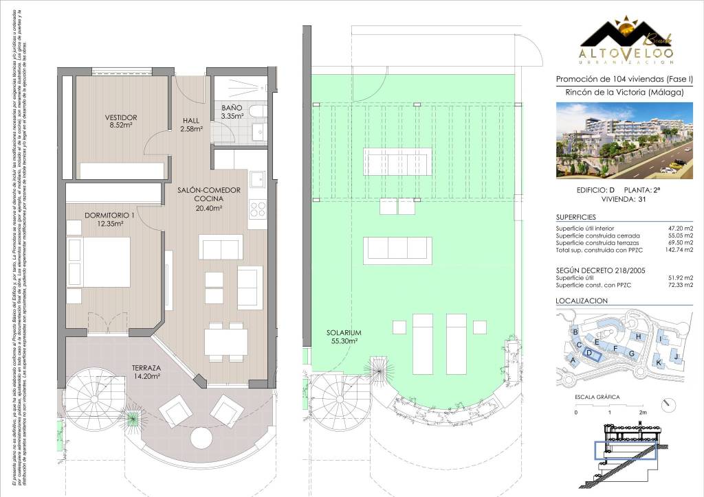 Brand new penthouse, in Rincón de la Victoria Lo Cea area, 45.18 m. of surface, 15.31 m2 of terrace (SOLARIUM: 130 meters), one bedroom, one bathroom. Extras: fitted wardrobes, elevator, community pool, solarium, terrace, urbanization, sea views, unobstructed views, parking included. Price: 245.000 ALTOVELOO Residential complex with a unique style and wonderful views of the sea, complementing the very bright apartments and penthouses thanks to the magnificent orientation with a contemporary design and large terraces and solarium. Twelve blocks with a maximum height of ground floor plus three of 1.2, 3 and 4 bedrooms with garage space included in the price. Located just 1 km from the sea and all the necessary services, in a quiet environment where you can live or enjoy an unforgettable vacation. With excellent communications that allows us to enjoy the Center Historic Málaga in 20 minutes and reach the airport in 30 minutes. The common areas include green areas to enjoy outdoors, a swimming pool with a chill out area and a paddle tennis court. Do not hesitate to book a visit and see what Altoveloo offers now to our first neighbors.