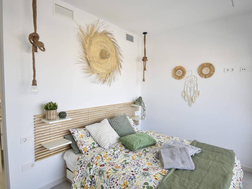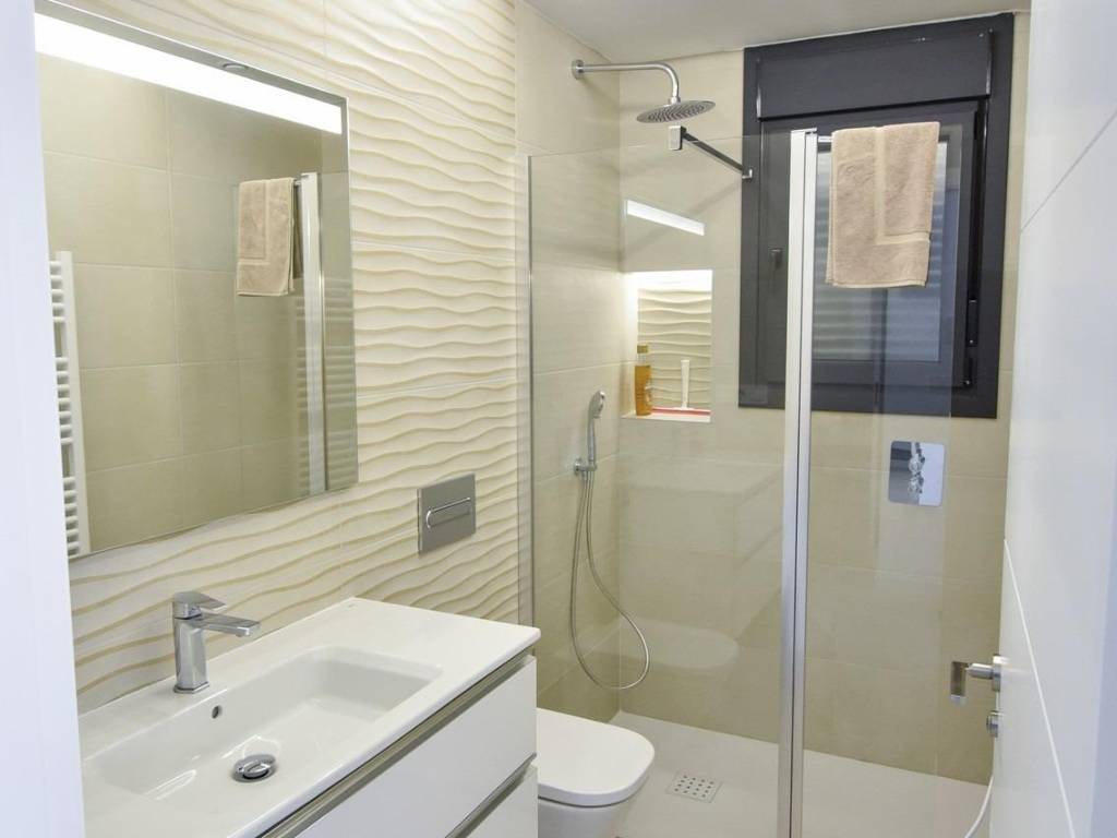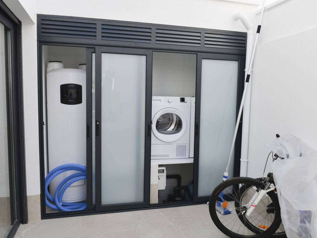 Большие окна в гостиной обеспечивают прямой доступ к бассейну, наполняя интерьер естественным светом. Энергоэффективные дополнения, такие как солнечные батареи и предварительно установленный канальный кондиционер, обеспечивают современный комфорт и экологичность. Бытовая техника от Balay (индукционная варочная панель, духовка, микроволновая печь, вытяжка, холодильник, встроенная посудомоечная и стиральная машины) облегчает процесс заселения.
