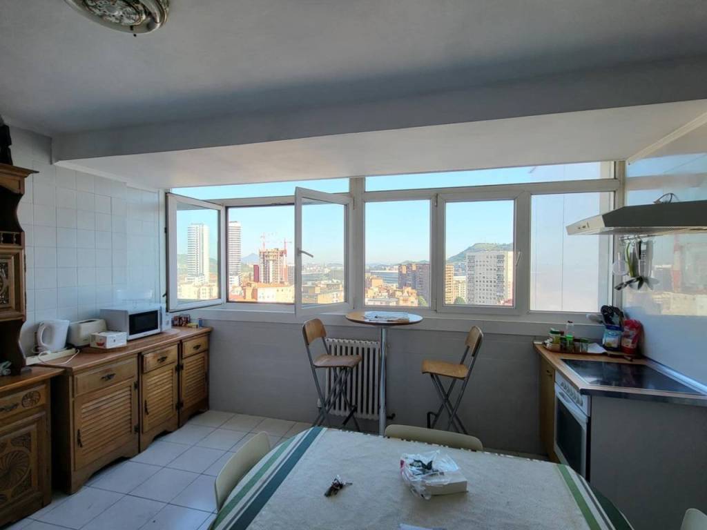 INMOBILIARIA INDAUTXU empieza la venta en EXCLUSIVA de un piso en el edificio REINA VICTORIA de autonomía, siendo una planta 15 TOTALMENTE EXTERIOR ya que hace esquina y con vistas a Archanda, a la Basílica de Begoña y a todo Bilbao,la vivienda consta de 4 HABITACIONES , cocina comedor, salón comedor y 2 BAÑOS completos, tiene ventanas de doble cristal y calefacción central, aunque actualmente se está viviendo en ella la vivienda necesita de alguna actualización.La vivienda se encuetrmuy bien situada junto al tranvía, a 2 minutos del metro y debajo el tren de cercanías, además de supermercados debajo de la vivenda, hospitales, colegios y parques.