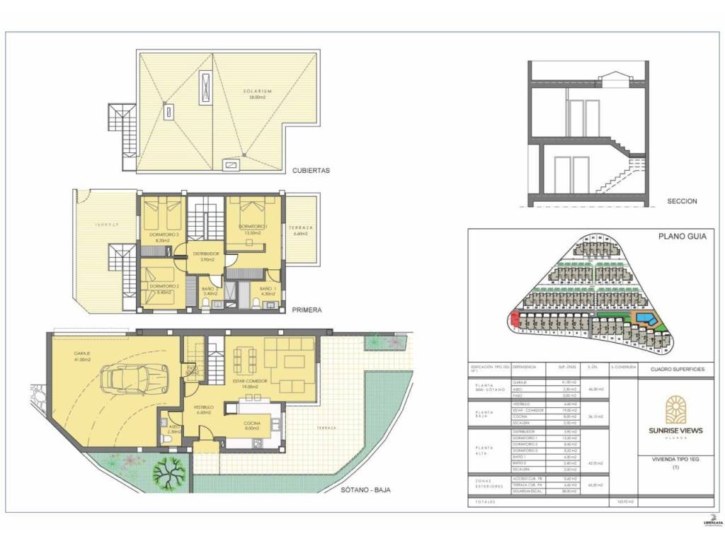Amplias viviendas en dúplex de 3 dormitorios, 2 baños y 1 aseo. Todas las viviendas cuentan con jardín privado en parcela, zona de solárium, y una plaza de garaje. Las viviendas disponen de aerotermia completa, sistema de energía renovable que aprovecha la energía ambiental exterior. Urbanización privada cercana a las principales ciudades de la provincia de Alicante, a 15 minutos en coche de Elche y Alicante, así como al aeropuerto y las mejores playas. Sunrise Views se encuentra ubicada en un entorno tranquilo enlas inmediaciones de Alenda Golf Course en Monforte del Cid.