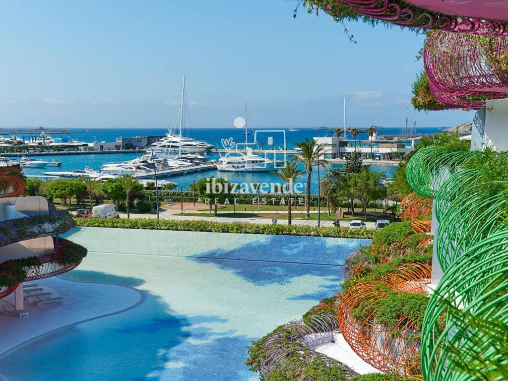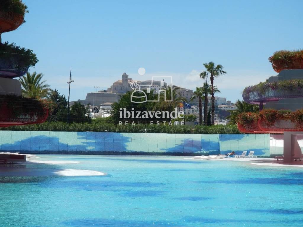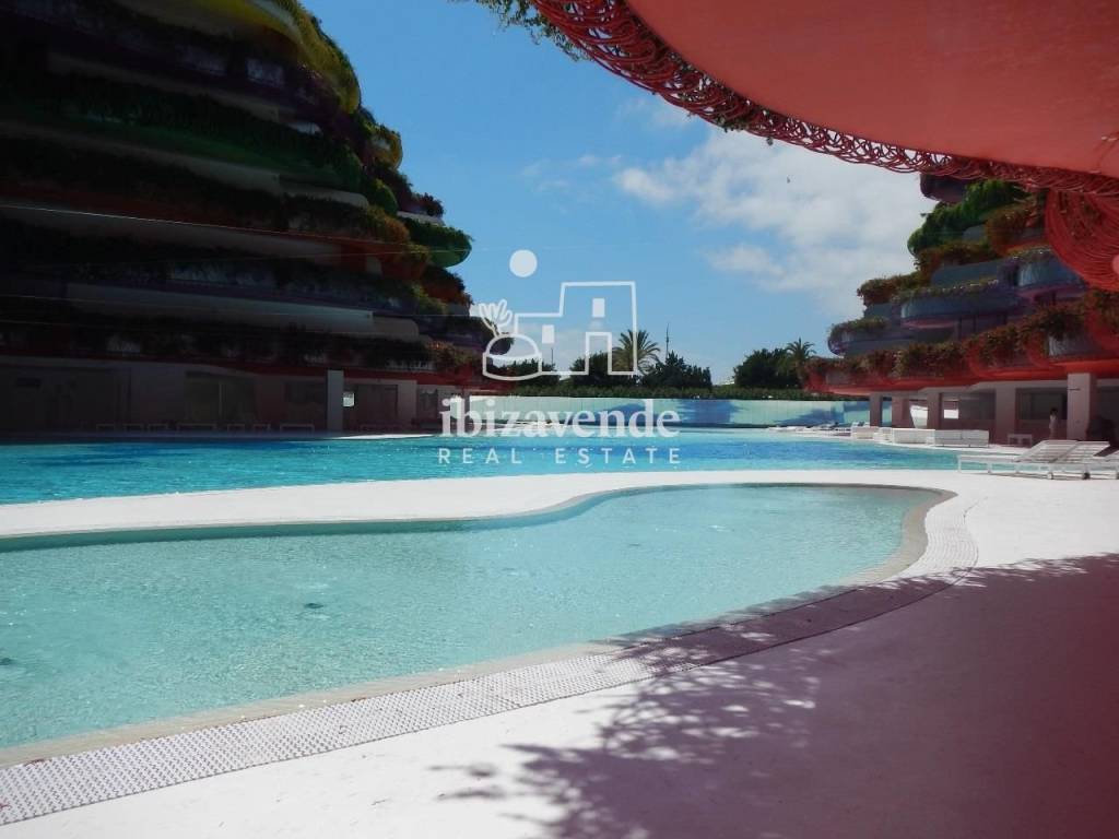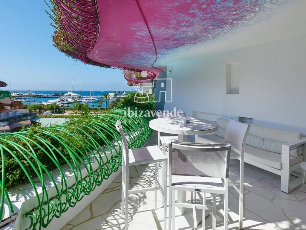 Exclusive apartment in Las Boas, built by the famous architect Jean Nouvel. This exclusive apartment is located on the Paseo Maritimo in Ibiza with stunning views of the sea and the port of La Marina, one of the most exclusive areas of the island. The apartment has a surface area of 97 m2 and is divided into two bedrooms, two bathrooms, a modern, fully equipped kitchen, a living room and a dining room. The terrace with 27 m2 offers a fantastic view. The property has a large communal pool with a children's pool, as well as a garage, a children's play area and a gym. The apartment is modern and tastefully decorated. All amenities such as supermarkets, banks or famous clubs such as Lio, Pacht and Heart are within walking distance. Option for a parking space for an additional 20,000.