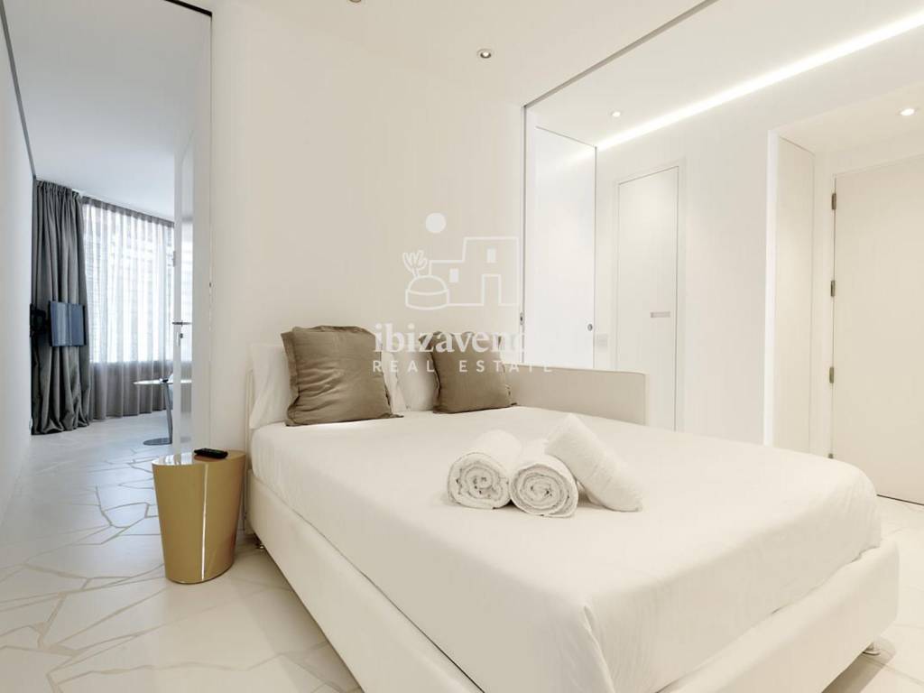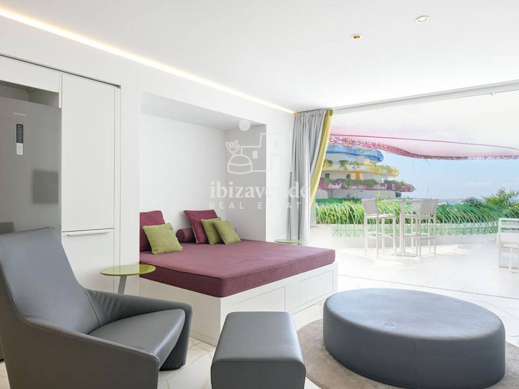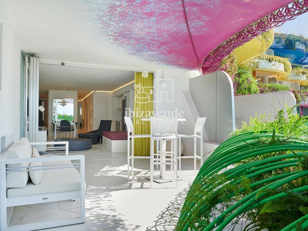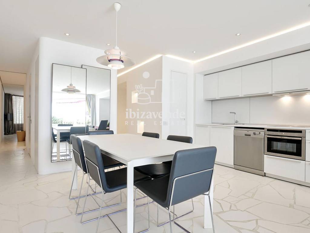Exclusive apartment in Las Boas, built by the famous architect Jean Nouvel. This exclusive apartment is located on the Paseo Maritimo in Ibiza with stunning views of the sea and the port of La Marina, one of the most exclusive areas of the island. The apartment has a surface area of 97 m2 and is divided into two bedrooms, two bathrooms, a modern, fully equipped kitchen, a living room and a dining room. The terrace with 27 m2 offers a fantastic view. The property has a large communal pool with a children's pool, as well as a garage, a children's play area and a gym. The apartment is modern and tastefully decorated. All amenities such as supermarkets, banks or famous clubs such as Lio, Pacht and Heart are within walking distance. Option for a parking space for an additional 20,000.