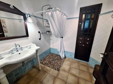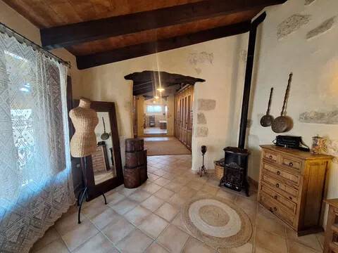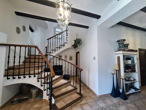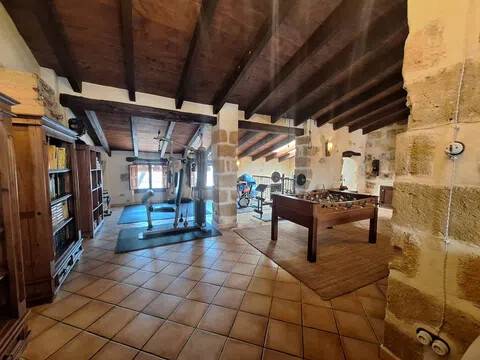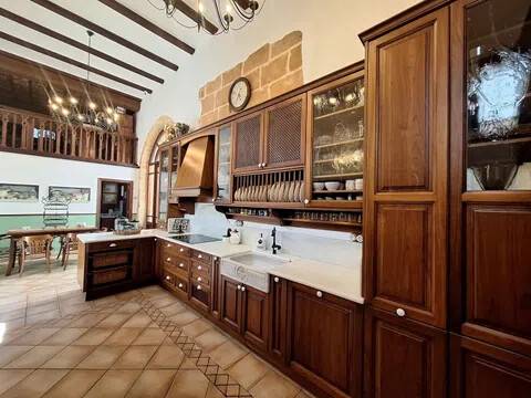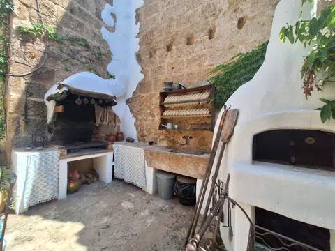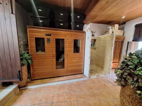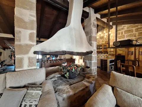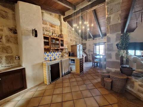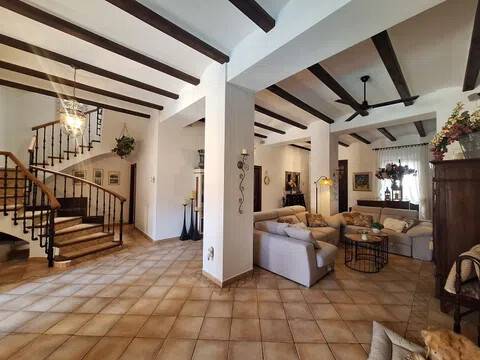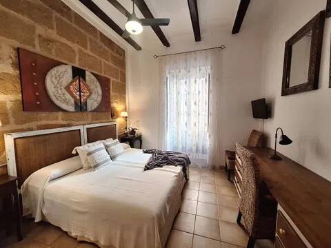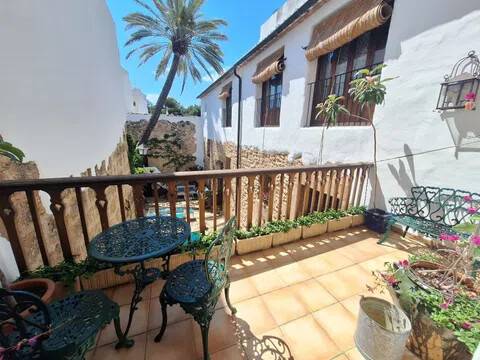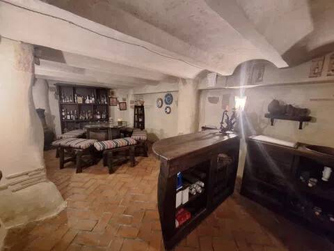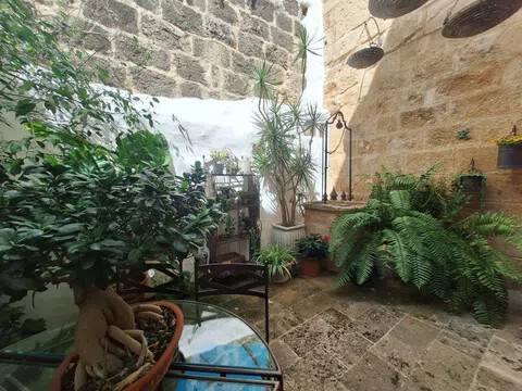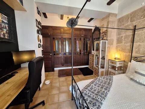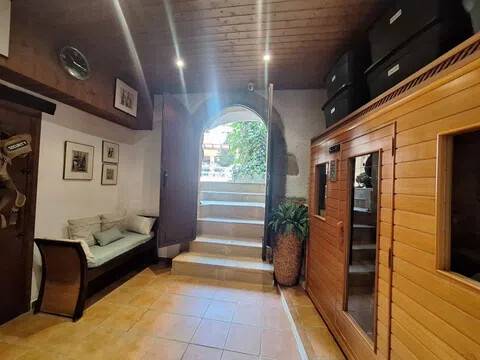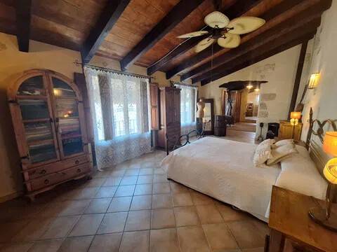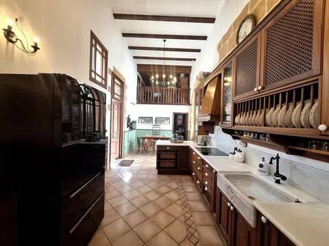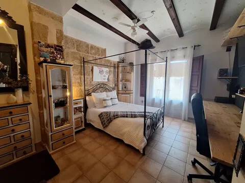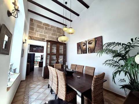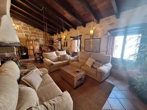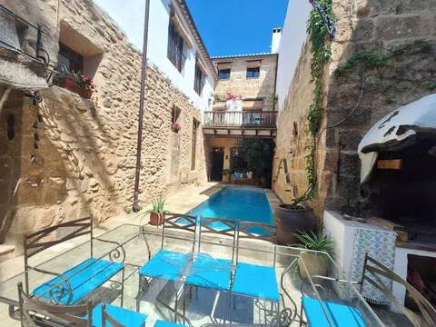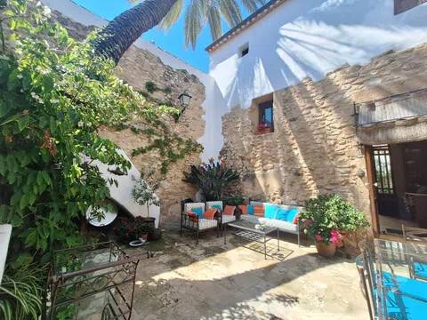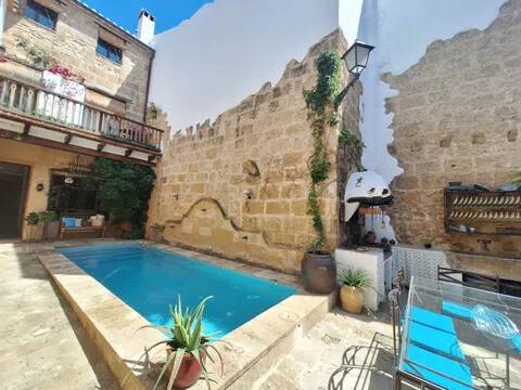 Magnifica propiedad. Casa de pueblo con piscina completamente restaurada y acondicionada para vivienda o para negocio. Toda la casa es espaciosa, con techos muy altos, muy soleada y luminosa con calidades de primera y con paredes interiores y exteriores de tosca original de la casa. Dispone de piscina en uno de los patios orientado al sur, saloncito para la sauna familiar, calefacción central por suelo radiante, aire acondicionado y ventiladores de techo. En la planta sótano hay una bodega muy original con bar para disfrutar con los amigos. Además de la casa principal hay 2 apartamentos-estudio con entrada independiente, haciendo un total de 746,20 metros cuadrados más dos patios que tienen 111,10 metros cuadrados y que suman el total de 857,73 m2 En la planta principal: Gran salón con salida a patio, comedor situado entre salón y cocina, cocina office con salida al mismo patio y lavandería, 1 dormitorio doble con baño en suite adaptado, y 1 aseo de cortesía. En la planta primera: Saloncito distribuidor, 4 dormitorios dobles ( uno de ellos como vestidor) 3 cuartos de baño (uno en suite). En planta segunda: Gran espacio de salón con chimenea, gimnasio y una pequeña cocina, donde se podrían habilitar 3 dormitorios dobles y baños en caso de orientarlo como negocio.