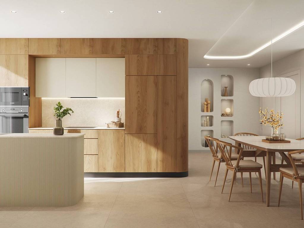 Fully furnished open-plan kitchen