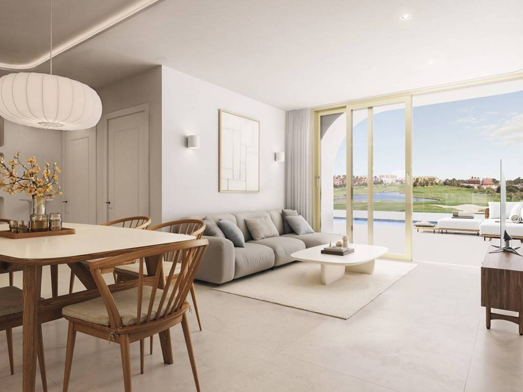 Each villa has been thoughtfully designed to make the most of natural light and panoramic views, featuring large windows, spacious terraces, and a spectacular private solarium. A home that invites you to enjoy the Mediterranean climate and breathtaking sunsets over the golf course and the Mar Menor.