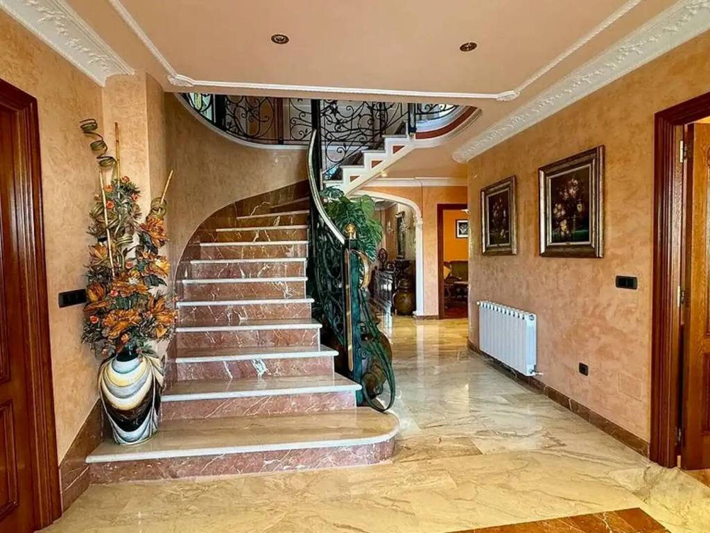 Chalet exclusivo en Cacabelos - El Bierzo (León) Vivienda de lujo dentro del casco urbano, rodeado de viñedos y naturaleza - Ideal para residencia familiar o negocio turístico En venta magnífico chalet independiente situado en Cacabelos, en el corazón de El Bierzo, una de las zonas vitivinícolas más reconocidas de España, en plena expansión con las variedades Godello y Mencía. Rodeado de naturaleza y con unas vistas despejadas espectaculares, este inmueble ofrece una combinación única de calidad constructiva, amplitud, confort y ubicación estratégica. Características generales: 831 m² construidos | 800 m² útiles Parcela de 2.500 m² Distribuido en 4 plantas Nave almacén adicional de 170 m² Distribución de la vivienda: ▶ Planta principal: Dos comedores: uno principal de 60 m² y otro de 20 m² con chimenea francesa, ideal como salón acogedor. Cocina independiente con zona de comedor. 2 habitaciones y 2 baños completos. Dos amplios halls, uno de entrada y otro de distribución interna. Acceso a las demás plantas por una espectacular escalera helicoidal de un solo tiro, con barandilla de forja artesanal y pasamanos en latón. Con amplio hueco para instalación de ascensor. ▶ Segunda planta: Hall distribuidor. 5 amplias habitaciones dobles. 2 baños completos. ▶ Tercera planta: Espacio polivalente ideal como salón de juegos, despacho o sala de ocio. 1 habitación adicional y otro baño completo. Zona de juegos equipada con mesa de billar. Lucernario de vidrio emplomado de colores, que ilumina toda la escalera desde el bajo cubierta hasta la planta principal. ▶ Planta baja: Bodega tradicional. Sala de calderas. Gimnasio. Garaje privado con capacidad para 6 vehículos. Zonas exteriores: Cenador de verano ideal para reuniones al aire libre. Comedor subterráneo forrado en piedra, bajo el cenador, perfecto para eventos o bodega privada. 2 pozos con aljibes que alimentan el sistema de riego automático para jardín y finca. Nave almacén de 170 m² situada en la parte trasera, completamente acondicionada. Finca frontal y trasera de la misma propiedad, lo que garantiza, intimidad, vistas despejadas. ⚙️ Detalles constructivos y técnicos: Año de construcción: 1999 Calefacción por gasoil (depósito de 1.000 L), circuito de agua caliente. Orientación sur-este, sol todo el año. Certificación energética: Clase C Sistema de alarma y videovigilancia Ventilación cruzada en todas las plantas, excelente aislamiento térmico. Muros exteriores en piedra de cantería y granito, con doble cámara. Dinteles, columnas y remates en granito macizo. Molduras de escayola en techos, suelos de mármol, granito y tarima de madera maciza barnizada en poliuretano. Carpintería interior a medida; ventanas de aluminio con doble acristalamiento y cámara. Climalit. Verjas exteriores en acero galvanizado y pintado. Ideal para vivienda o negocio turístico Gracias a su ubicación en el Camino de Santiago, por el que pasan más de 160.000 peregrinos al año, esta propiedad tiene un enorme potencial para convertirse en alojamiento rural o casa vacacional de lujo. Precio negociable Más información y visitas: Carlos - 607 45 45 66
