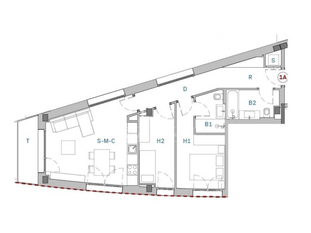 This 81 m² apartment boasts a space-maximizing design with an open-plan layout that receives plenty of natural light and pleasant views of the surrounding area. The day area houses a spacious living-dining room with an open-plan kitchen and access to a 5 m² terrace. The night area offers a bedroom with its own private bathroom, a single bedroom , and a bathroom to serve the entire property.