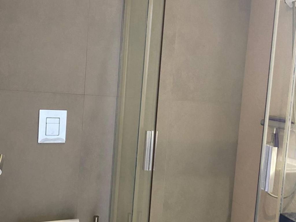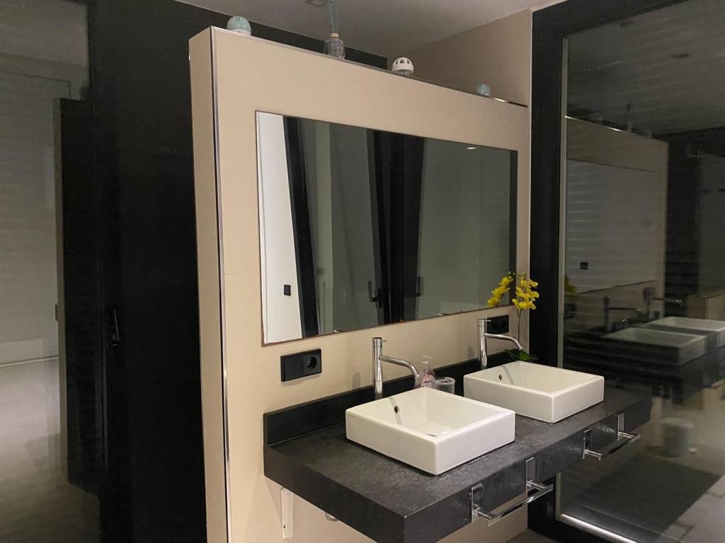 The master suite has large windows and a king size bed. There is a magnificent en-suite bathroom offering double sinks and a large shower with views.