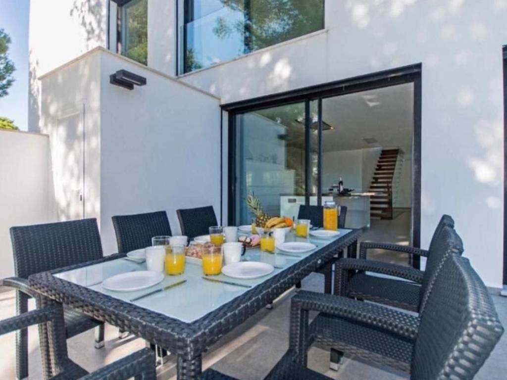 Modern townhouse a few meters from the sea for temporary rental located in Playa de Muro. The modern style home is ideal for living at any time of the year, with a total of 3 bedrooms, 3 bathrooms and 1 toilet.