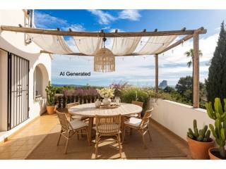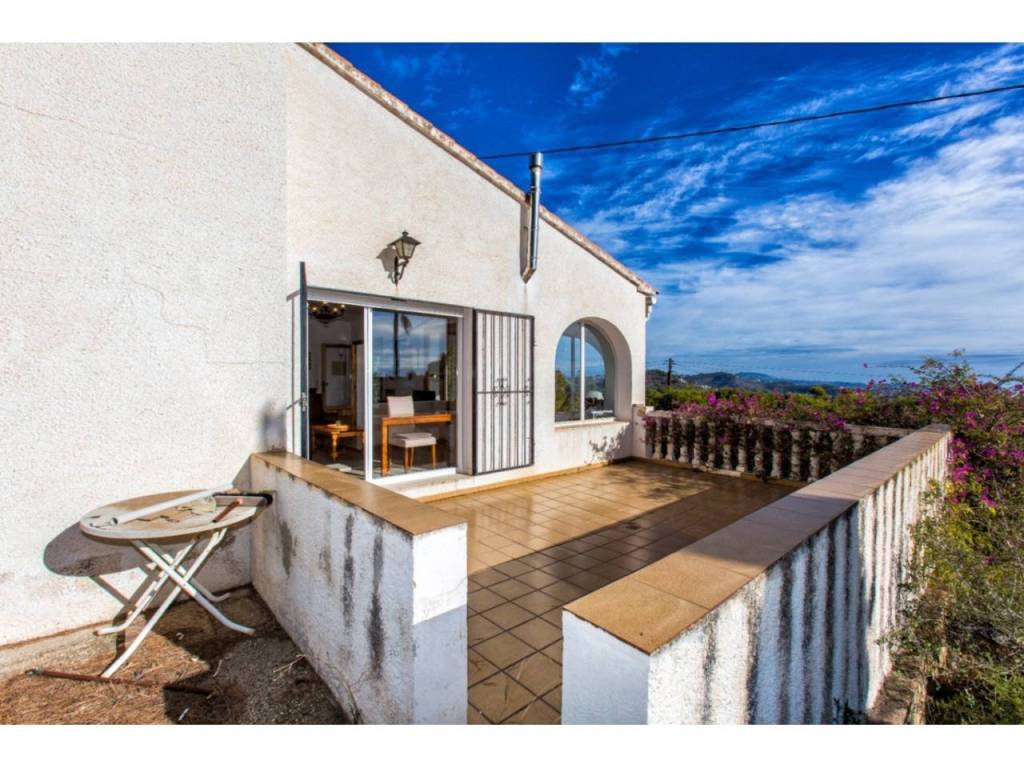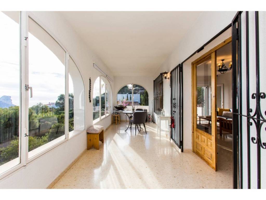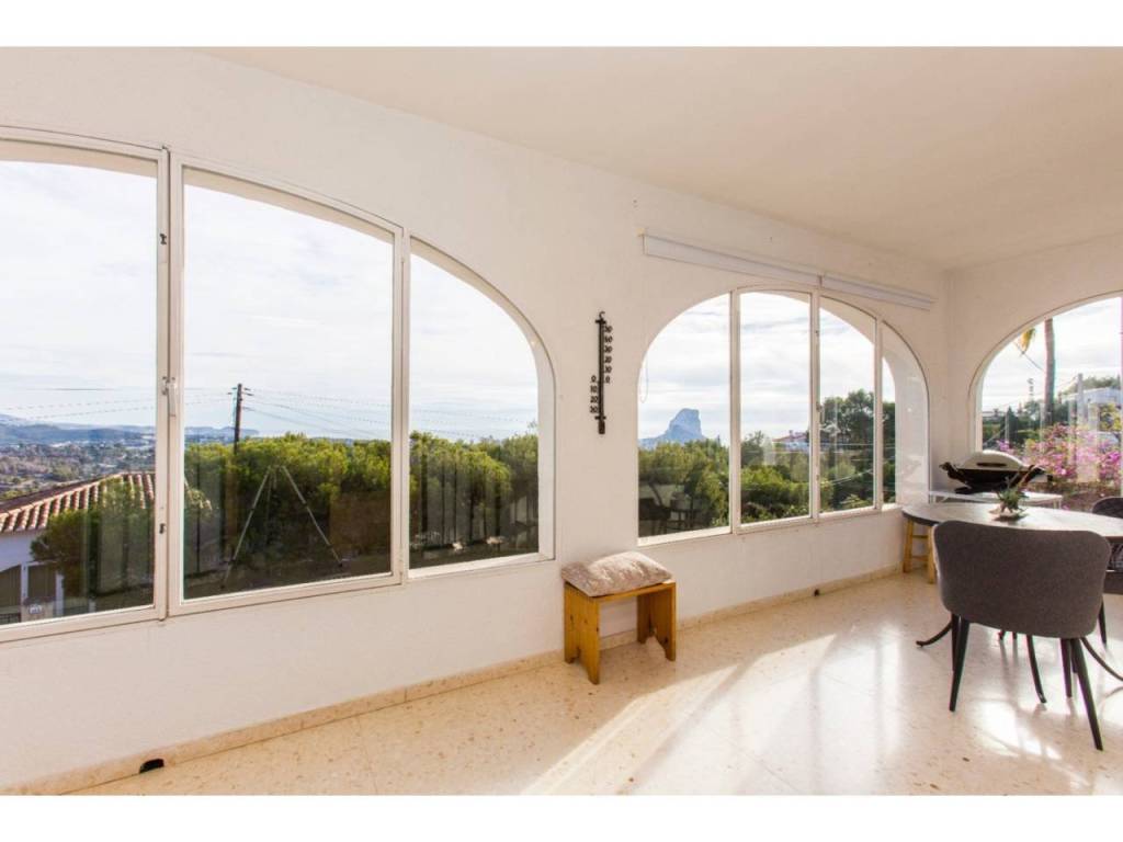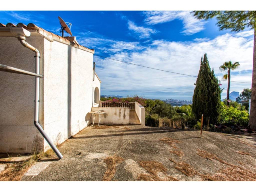 Villa con doble parcela y excelentes vistas al mar en Calpe. Amplia superficie habitable, gran garaje, posibilidades de renovación y piscina.En la tranquila zona de Oltamar, en Calpe, se encuentra esta villa en una parcela doble, ideal para compradores que buscan espacio, privacidad y posibilidades de futuro. Con hermosas vistas al mar desde Moraira hasta el Peñón de Ifach, esta propiedad es ideal para entrar a vivir inmediatamente y para seguir desarrollándola. DescripciónAl llegar a la villa, lo primero que llama la atención son las dos puertas de garaje. Dan acceso a un garaje muy espacioso de casi 60 m², ideal para varios coches, sala de ocio o trastero. Una escalera conduce a la planta de estar. Se accede a la vivienda a través de la naya acristalada: una amplia terraza acristalada con magníficas vistas al mar. A continuación se encuentra el salón-comedor con acceso directo a una gran terraza en el lateral de la casa. También con excelentes vistas al mar. La cocina independiente está bien cuidada y tiene una distribución práctica, además de un armario empotrado. Además, hay dos dormitorios dobles y un cuarto de baño renovado. La vivienda cuenta, entre otras cosas, parcialmente con doble acristalamiento, estufa de pellets en el salón y aire acondicionado en el dormitorio principal. Habitable en su estado actual, pero con un claro potencial de mejora, lo que aumentaría el confort y el valor de la vivienda. El jardín necesita una reforma a fondo y ofrece espacio suficiente para construir una piscina.Características Parcela doble de aprox. 830 m² + 1.304 m²Preciosas vistas al marGaraje doble de aprox. 60 m²Espacio para piscinaPor qué visitar esta villaDiversas posibilidades de desarrolloUbicación tranquilaBase sólida para la renovación o ampliaciónLos padres de la actual propietaria construyeron esta villa para ellos mismos y vivieron allí durante muchos años con gran satisfacción. La casa era para ellos un verdadero hogar, y ella espera que el nuevo propietario encuentre aquí el mismo sentimiento.¿Quiere saber más sobre las posibilidades? Reserve una visita o solicite información a uno de nuestros especialistas en ventas.