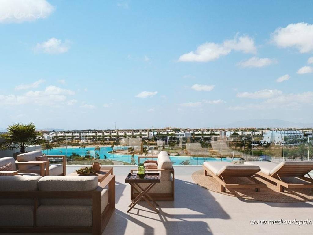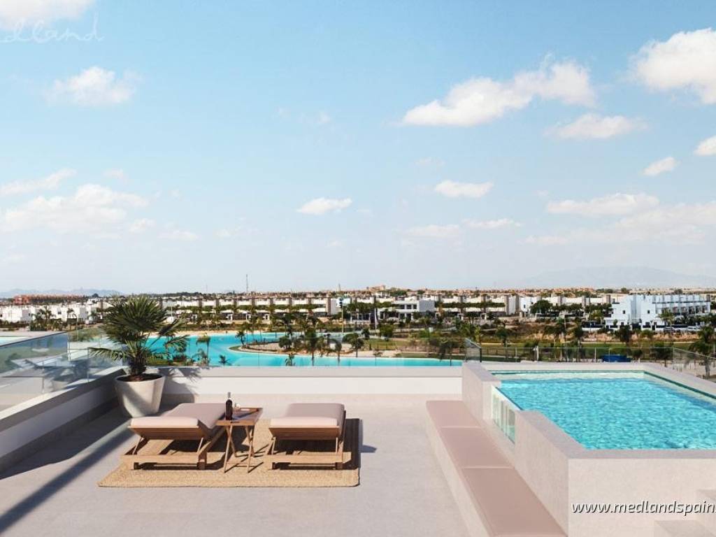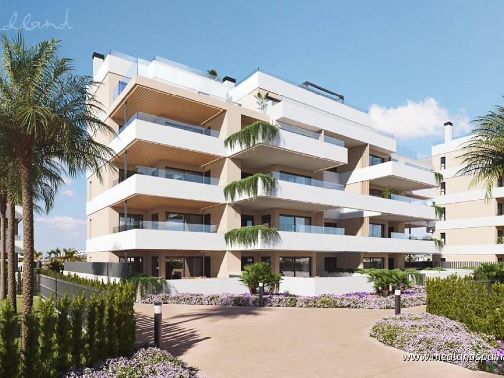 Эти элегантные апартаменты в Лос-Алькасарес расположены в престижном комплексе Santa Rosalía Lake and Life Resort, где современная архитектура сочетается с расслабленной атмосферой Средиземноморья. Комплекс состоит из четырех зданий по пять этажей, все ориентированы на запад, чтобы воспользоваться мягким дневным светом и насладиться видами на кристально чистое озеро и ухоженные сады.Каждое жильё спроектировано с вниманием к деталям и сочетает комфорт с современным дизайном. В апартаментах 2 или 3 спальни, 2 ванные комнаты, открытая планировка и большие окна, наполняющие помещения естественным светом. Отделка включает тёплые полы и предварительную установку полотенцесушителей в ванных комнатах, полностью установленную систему кондиционирования воздуха, кухонный остров, светодиодное освещение и электрические жалюзи в спальнях. Квартиры на первом этаже располагают просторными террасами, а пентхаусы частными террасами на крыше с бассейном и летней кухней, где можно отдыхать и наслаждаться солнечными днями.Зоны общего пользования созданы для активного и комфортного образа жизни. Для жителей предусмотрены два бассейна с морской водой и солнечными террасами, подогреваемый бассейн, парковка для велосипедов и сады в средиземноморском стиле. На территории также есть детская площадка, зона для пикников и барбекю, а в подземном гараже кладовые помещения и предварительная установка для зарядных станций электромобилей.Santa Rosalía Lake and Life Resort это уникальное место, где вода, природа и гармония создают атмосферу спокойствия. Вокруг комплекса расположены прогулочные дорожки, спортивные площадки и зоны отдыха, напоминающие пляж. Город Лос-Алькасарес и пляжи Мар Менор находятся всего в 3,6 км (около 7 минут на автомобиле), аэропорт Мурсия-Корвера в 30 минутах езды, а аэропорт Аликанте чуть больше часа. Идеальный выбор для международных покупателей, ценящих комфорт, качество и стиль средиземноморской жизни.