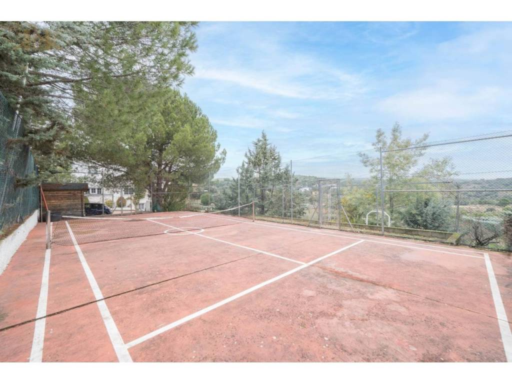 En el exterior, la parcela alberga una gran piscina privada rodeada de zonas ajardinadas, perfecta para disfrutar del buen clima, así como una pista de tenis privada, un valor añadido excepcional para los amantes del deporte y el ocio al aire libre.