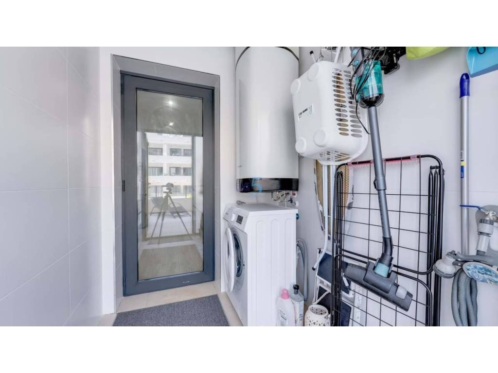 El apartamento goza de una posición privilegiada junto a la piscina común, con acceso privado directo a la zona de la piscina — perfecto para relajarse o entretenerse. En el interior, la propiedad ofrece una zona espaciosa, luminosa y de espacio abierto, salón, comedor y cocina. La cocina moderna está completamente equipada con electrodomésticos empotrados y conduce a una sala de servicio independiente.